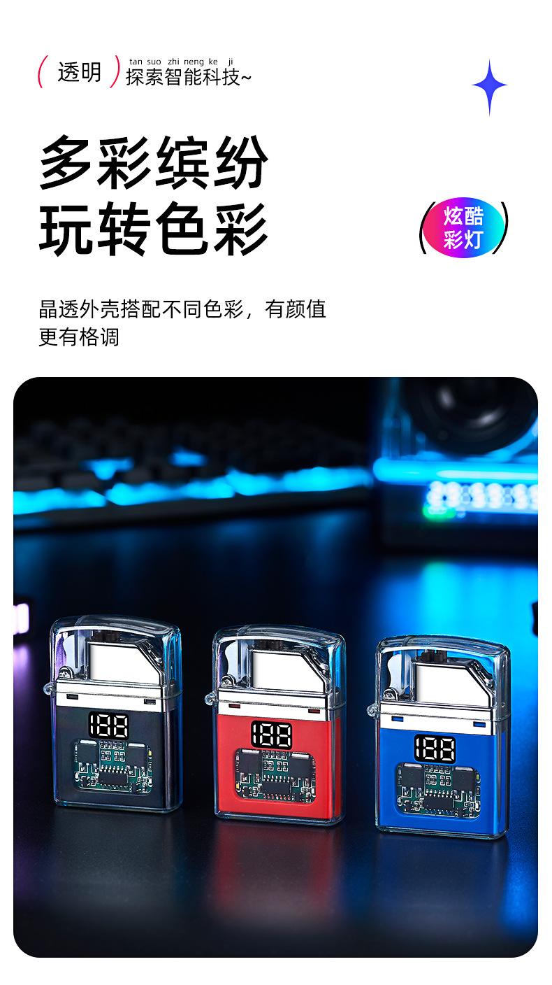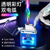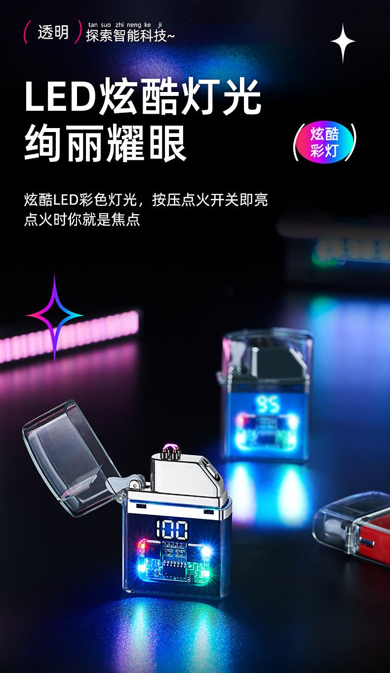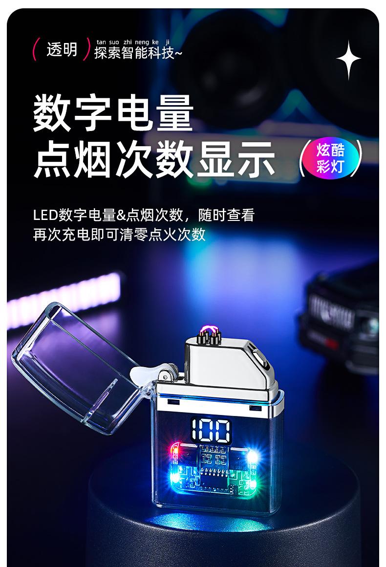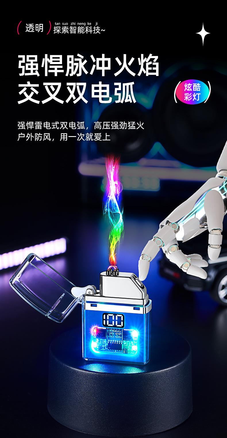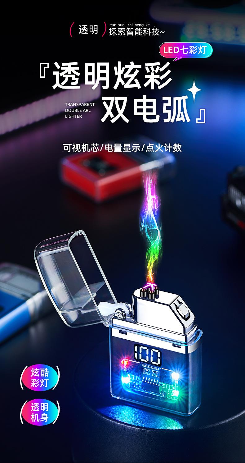 Encendedor de cigarrillos mini, recargable, de arco doble, transparente, resistente al viento, con pantalla digital y luz LED de colores fríos.