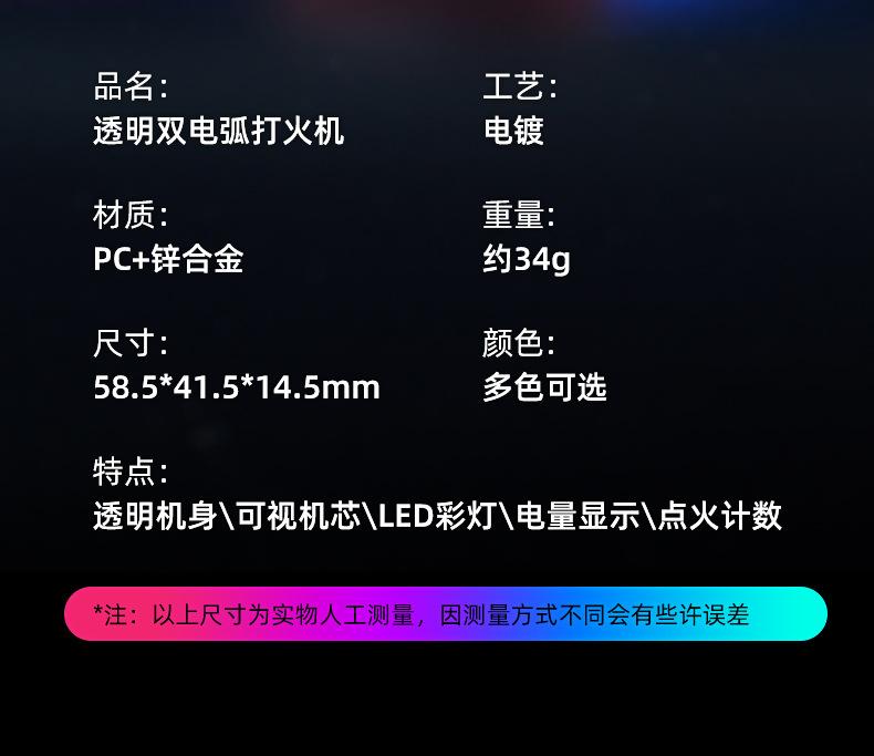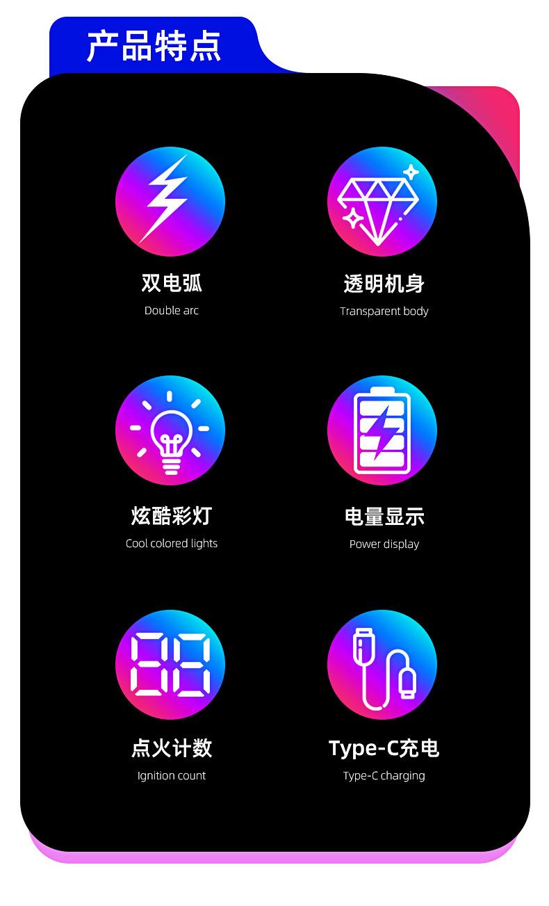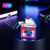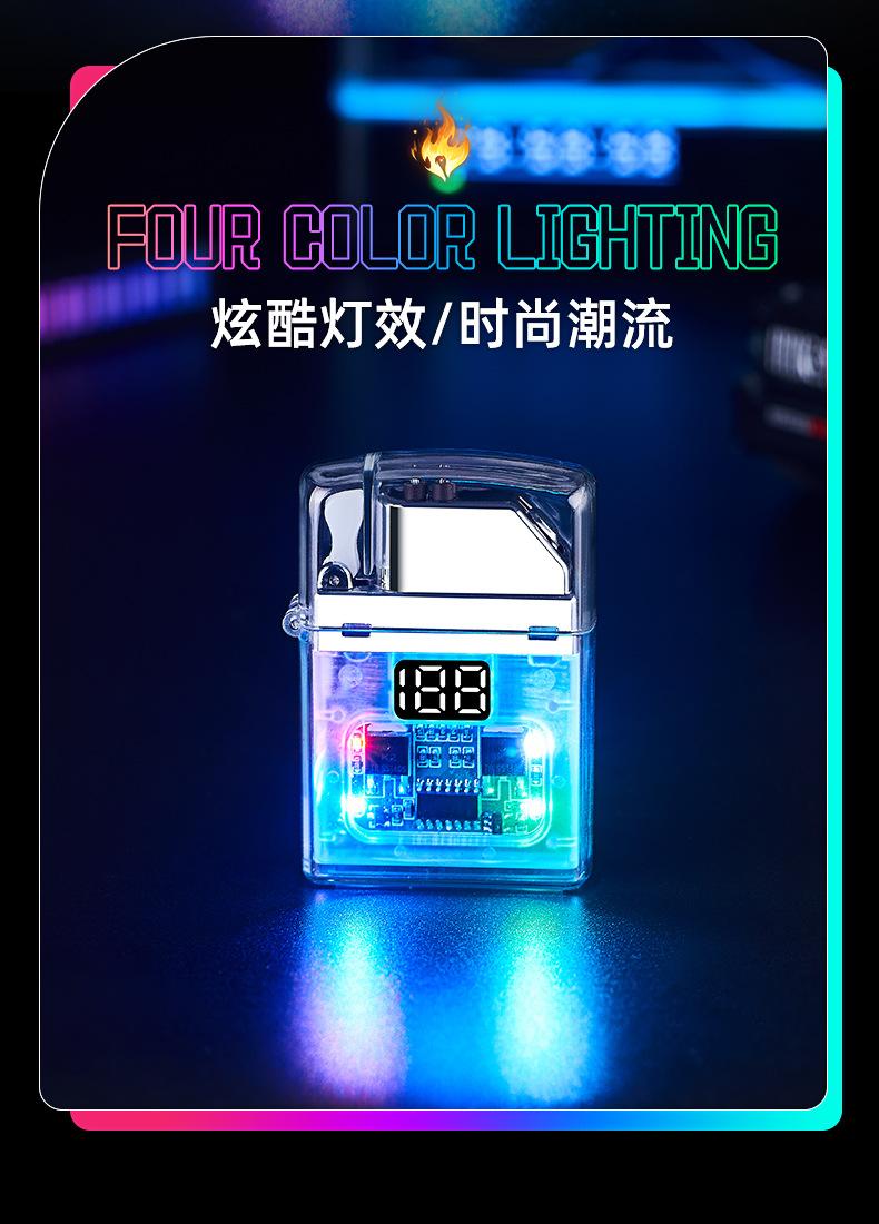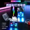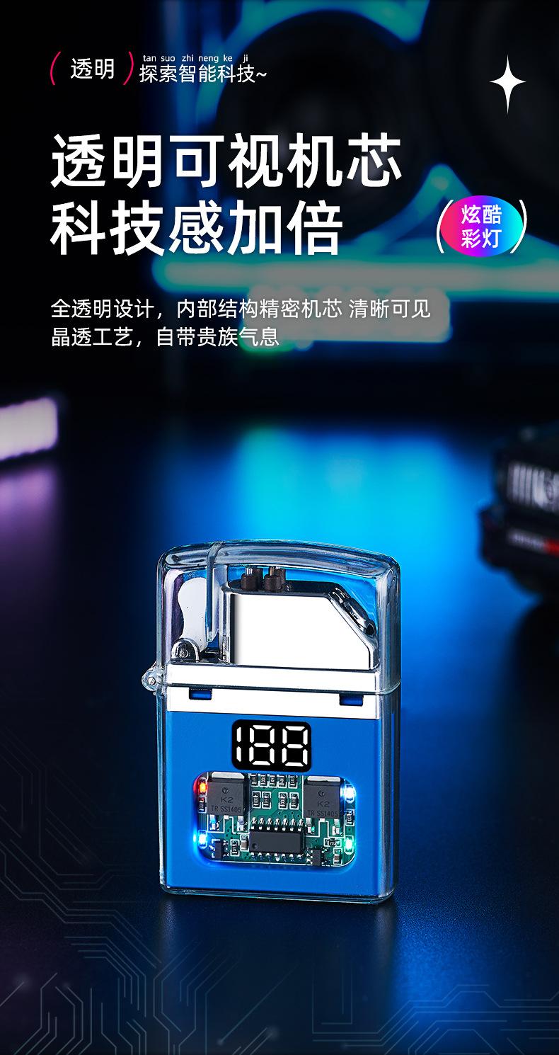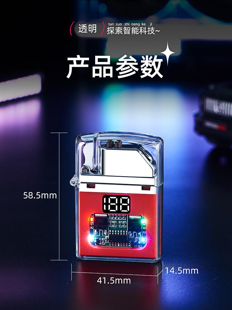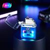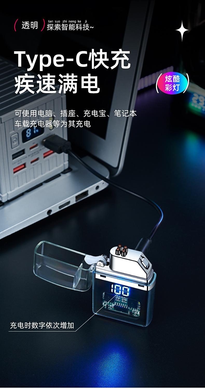 Encendedor de cigarrillos mini, recargable, de arco doble, transparente, resistente al viento, con pantalla digital y luz LED de colores fríos.
