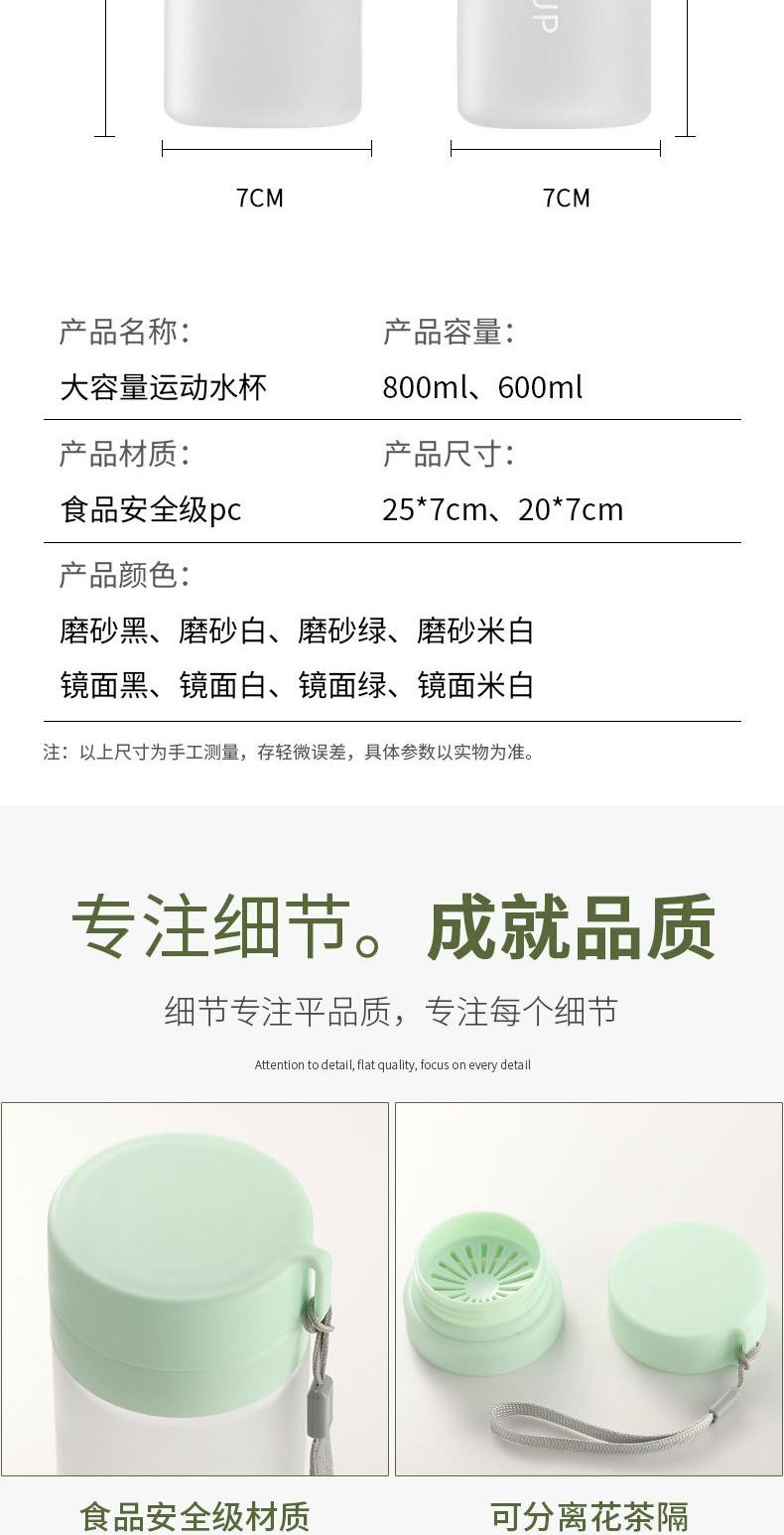 Vaso de Agua Xyt de Gran Capacidad Deportivo Verano para Mujer Vaso Portátil Esmerilado de Doble Capa Vaso de Té de Plástico Transparente para Hombre