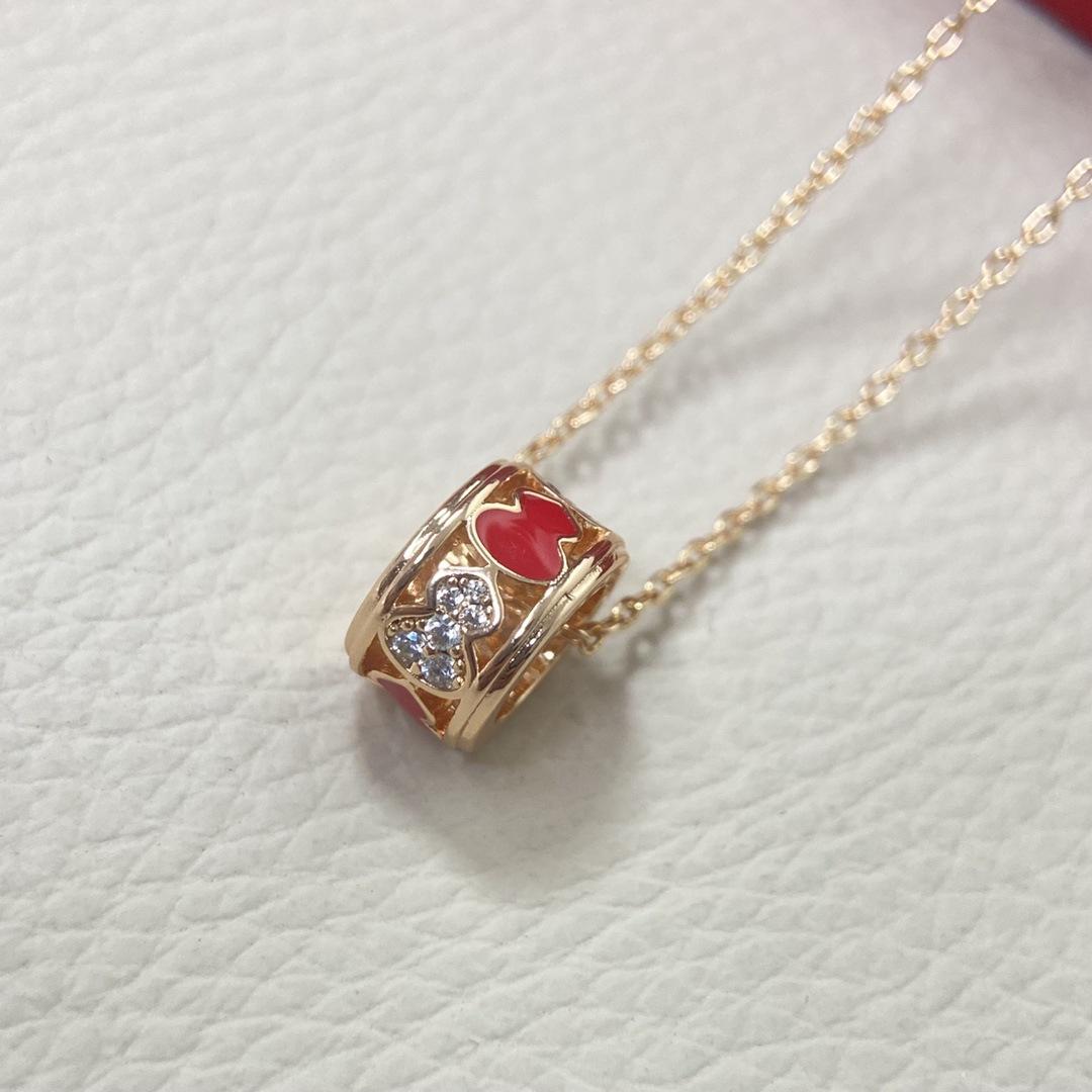 Nuevo collar de calabaza con diamantes esmaltados huecos en oro V para mujer, colgante de calabaza roja chapada en oro rosa, cadena de clavícula de moda que combina con todo.