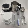 1 estufa cuadrada gris plateado estándar británico, 1 taza de 1000 ml con asa curva, 1 cuchara cuadrada plateada, 15 g de flores secas: 1 bolsa de lavanda, 1 bolsa de rosa francesa, 4 cajas de aceites esenciales (lavanda, limón, rosa, vainilla)