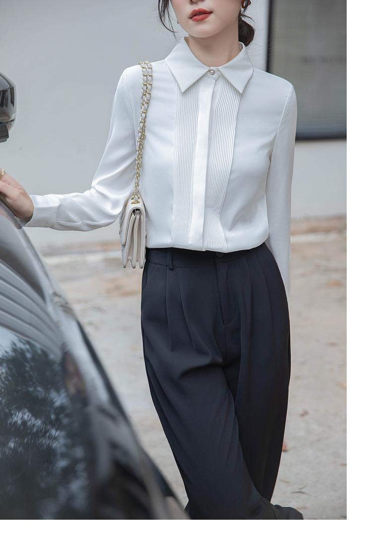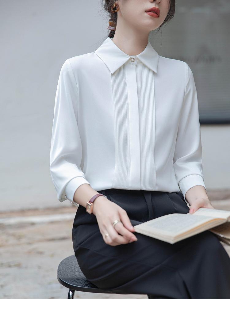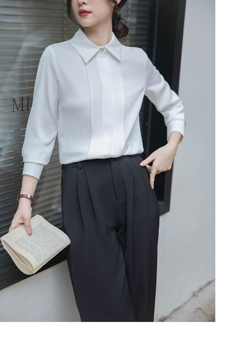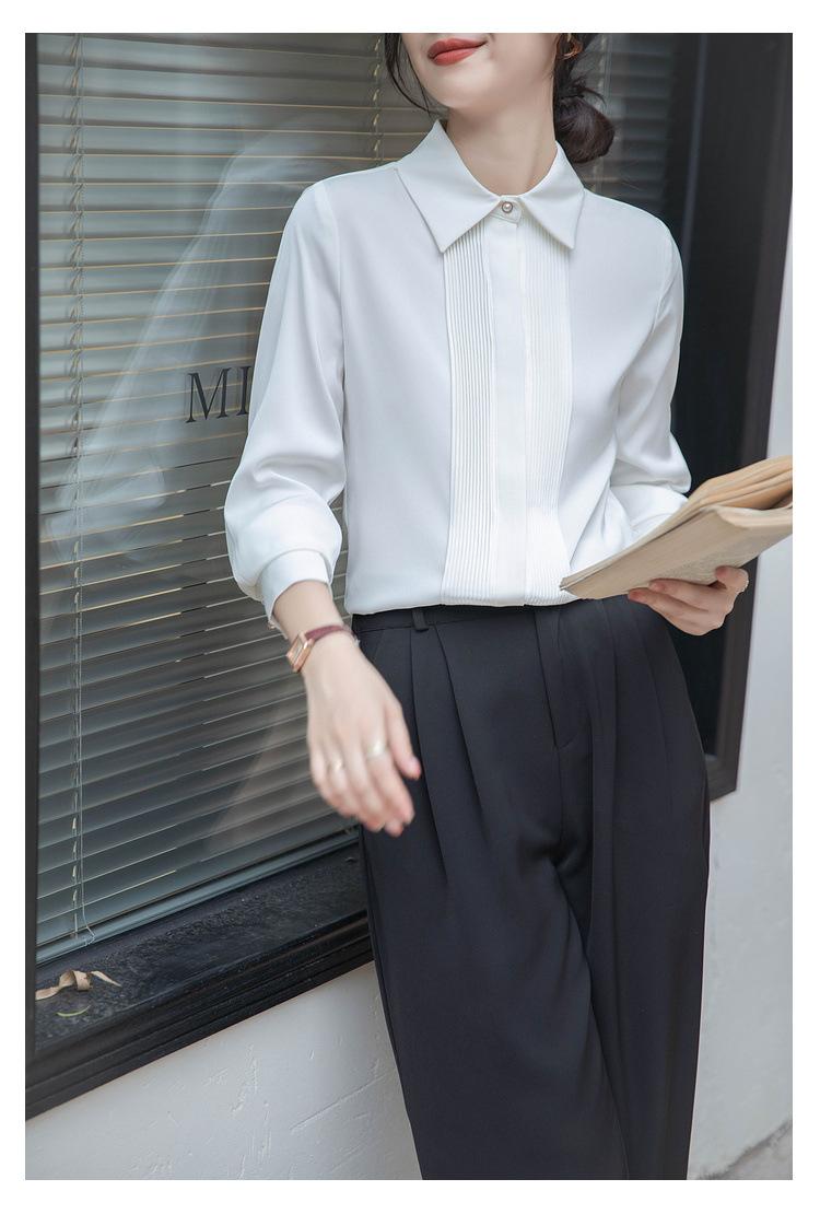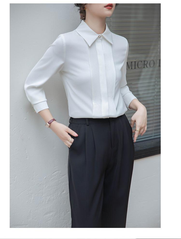 Camisa de gasa blanca estilo francés para mujer Primavera y Otoño 2024 Nuevo diseño sentido nicho retro estilo Hong Kong temperamento interior superior