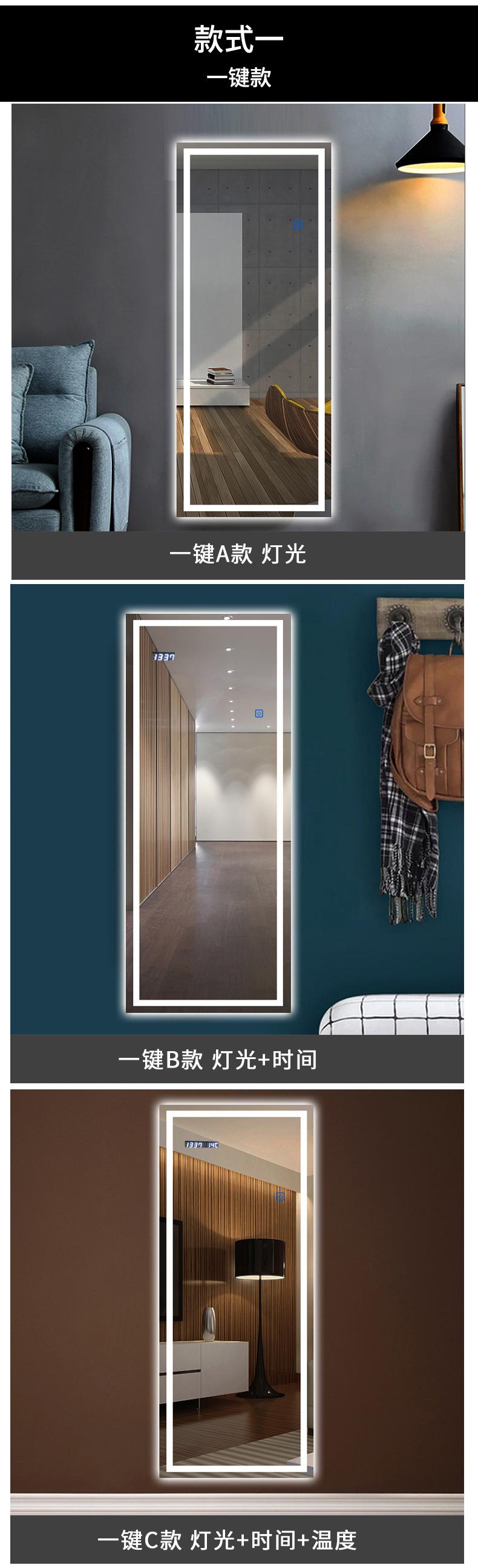 Espejo de cuerpo entero multifunción de moda simple, espejo de pared para dormitorio, espejo de estilo europeo transparente de cuerpo entero con luz LED.