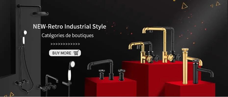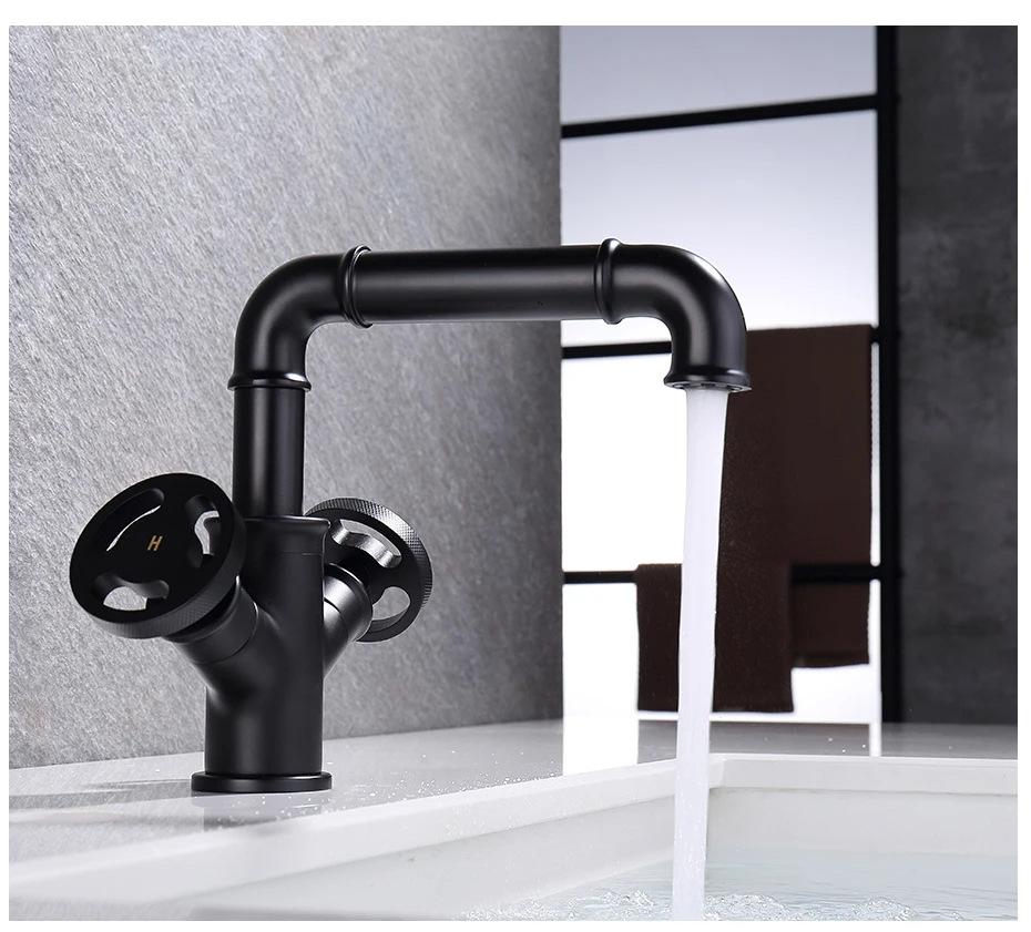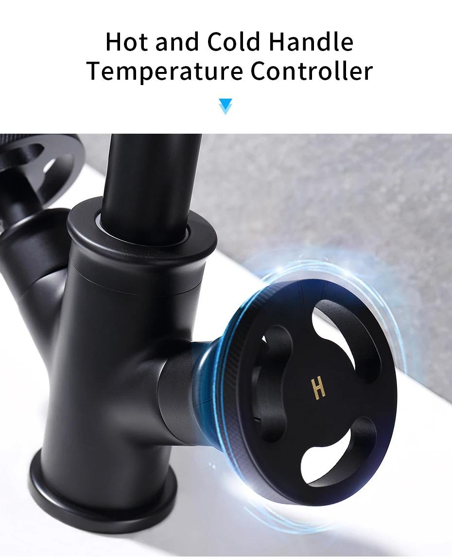 Grifo de lavabo de agua caliente y fría, grifo industrial de doble manija con control de viento, grifo de lavabo para baño