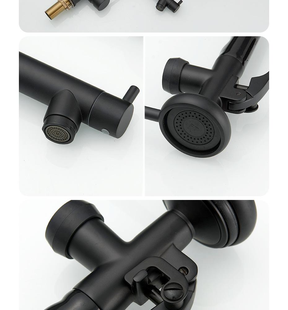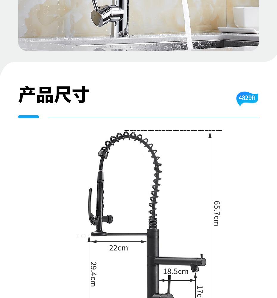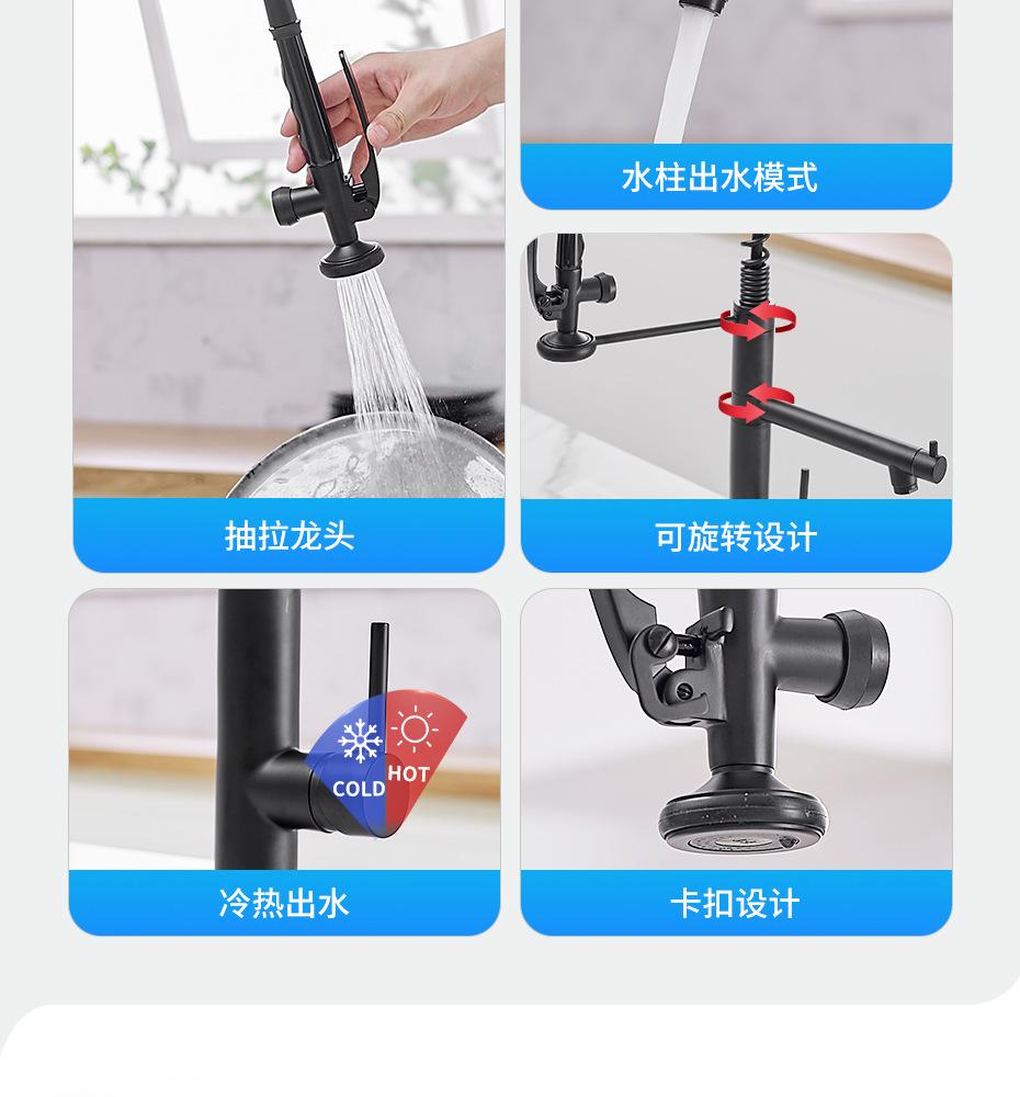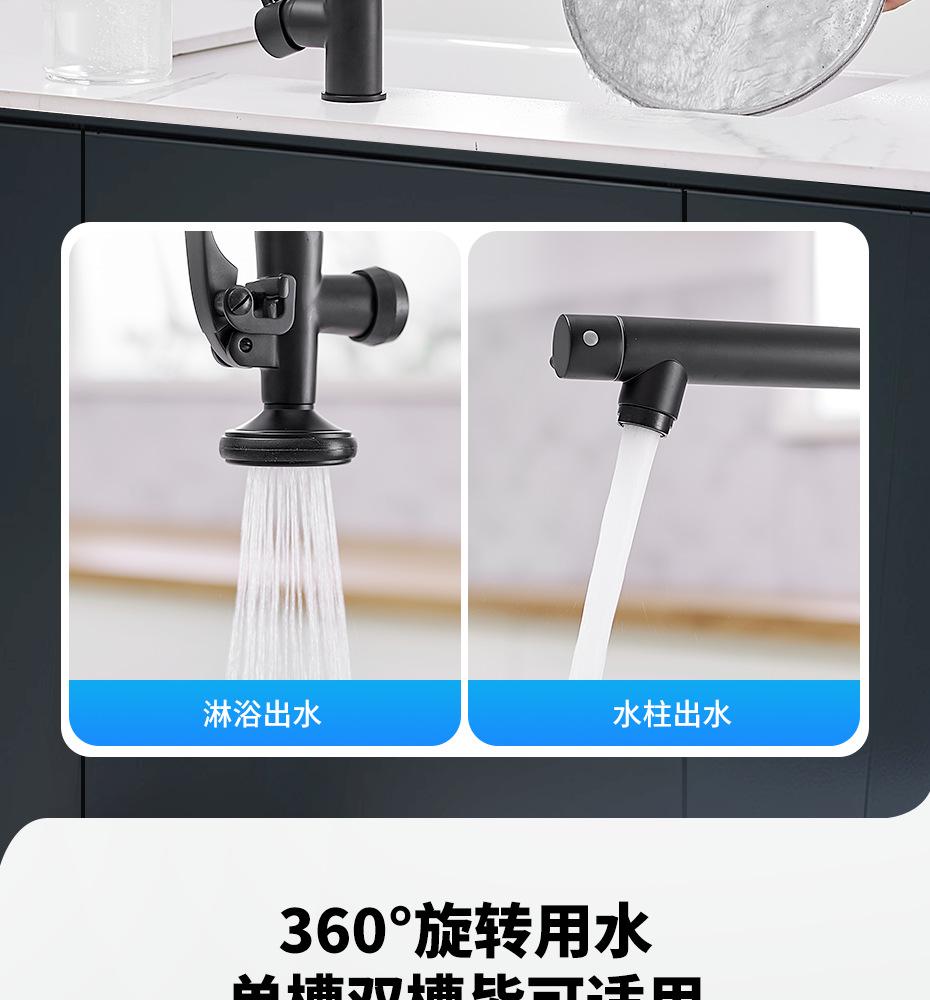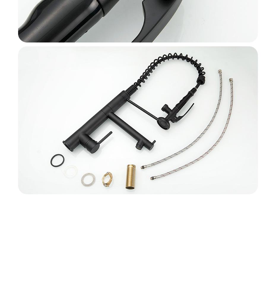 Grifo de cocina alto de primavera negro, grifo para lavabo de verduras, grifo de doble salida para agua caliente y fría