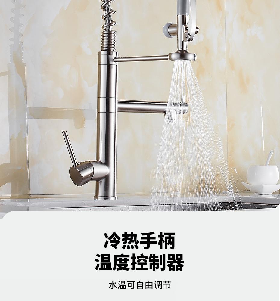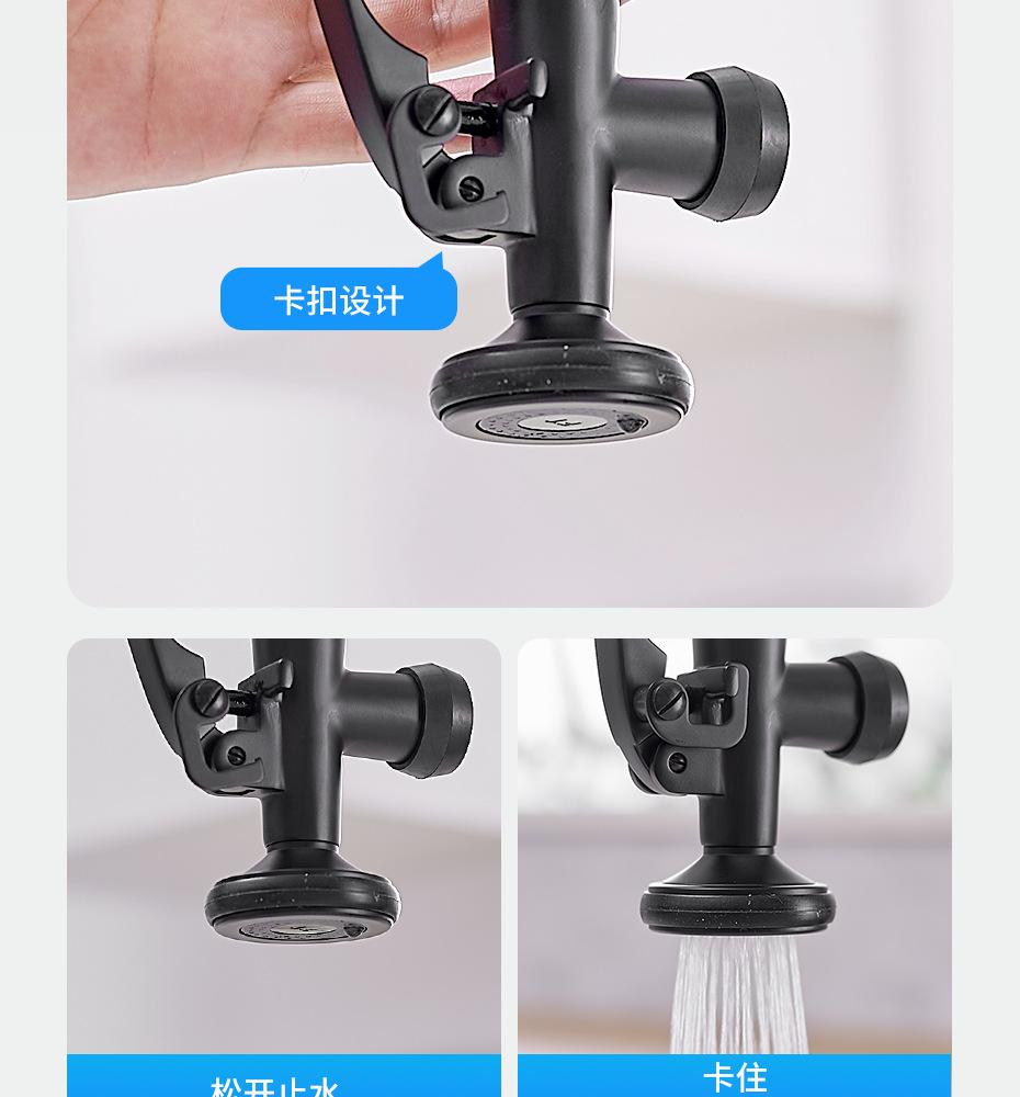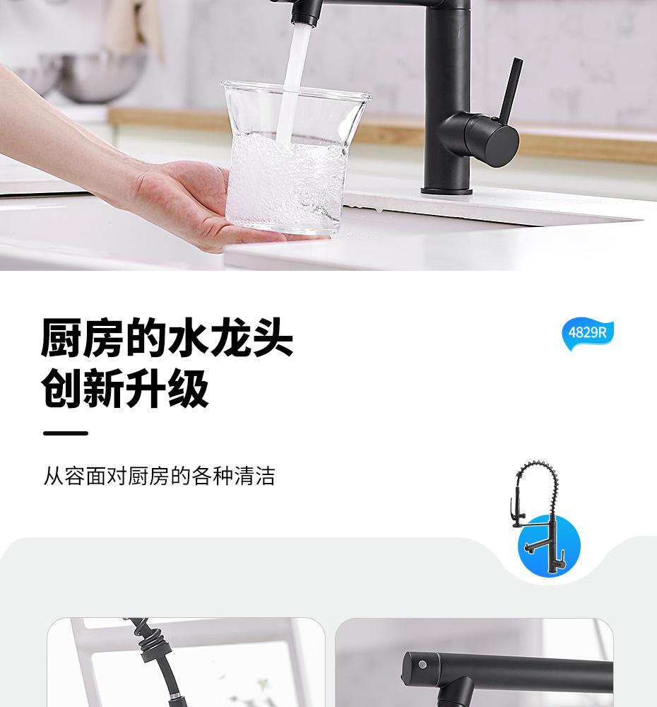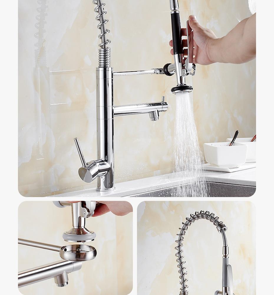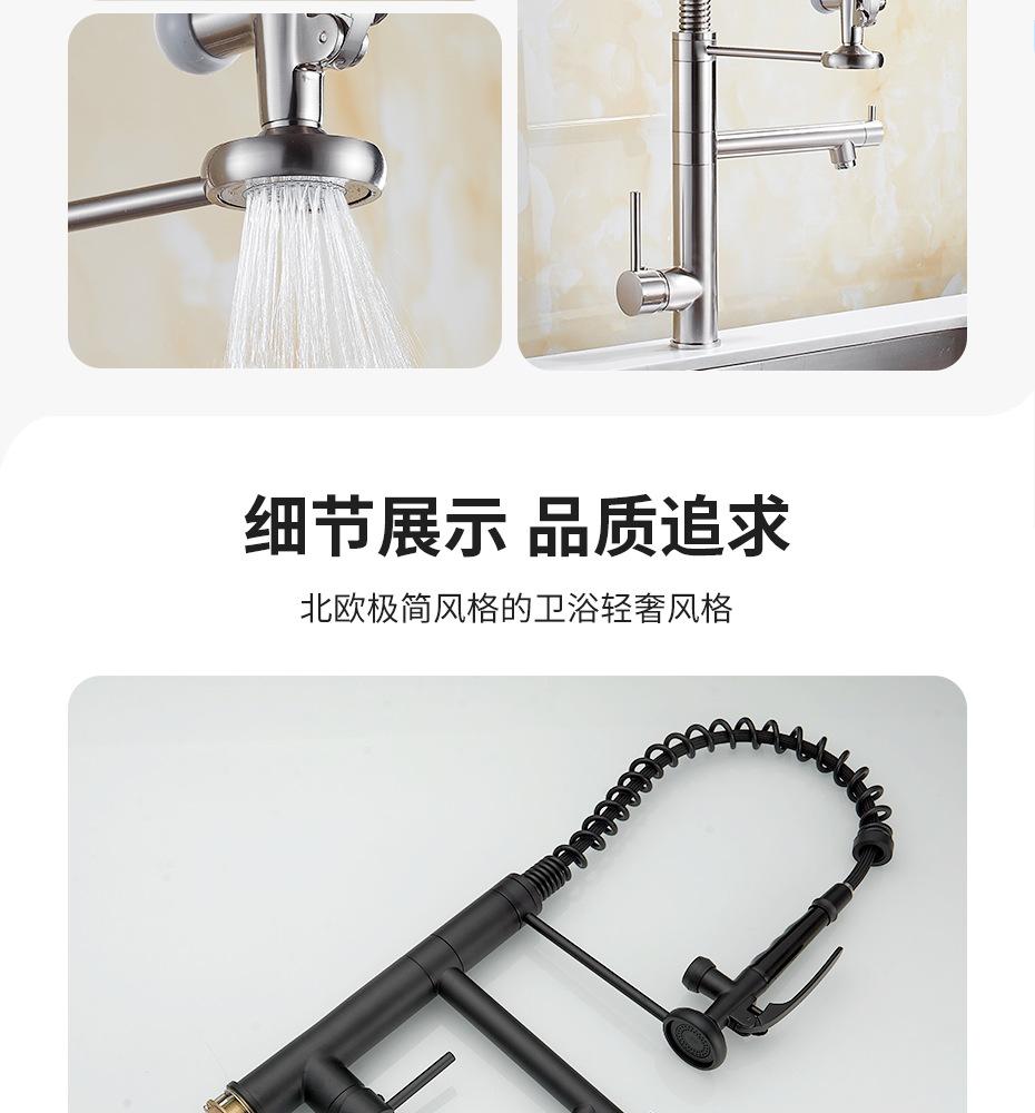 Grifo de cocina alto de primavera negro, grifo para lavabo de verduras, grifo de doble salida para agua caliente y fría