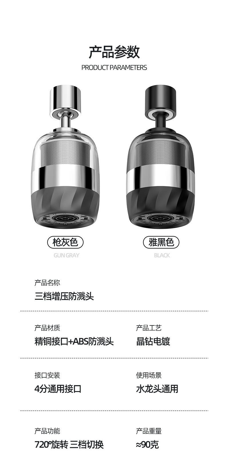 C092 gun gray-three-speed anti-splash head, C092 elegant black-three-speed anti-splash head