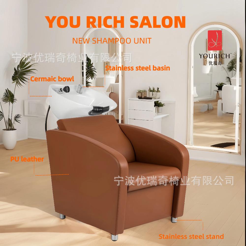 Sillón de Champú de Acero Inoxidable para Barbería Silla Semicostada para Lavar el Cabello Sillón de Champú de Alta Gama para Salón de Belleza Silla de Champú para Salón de Belleza
