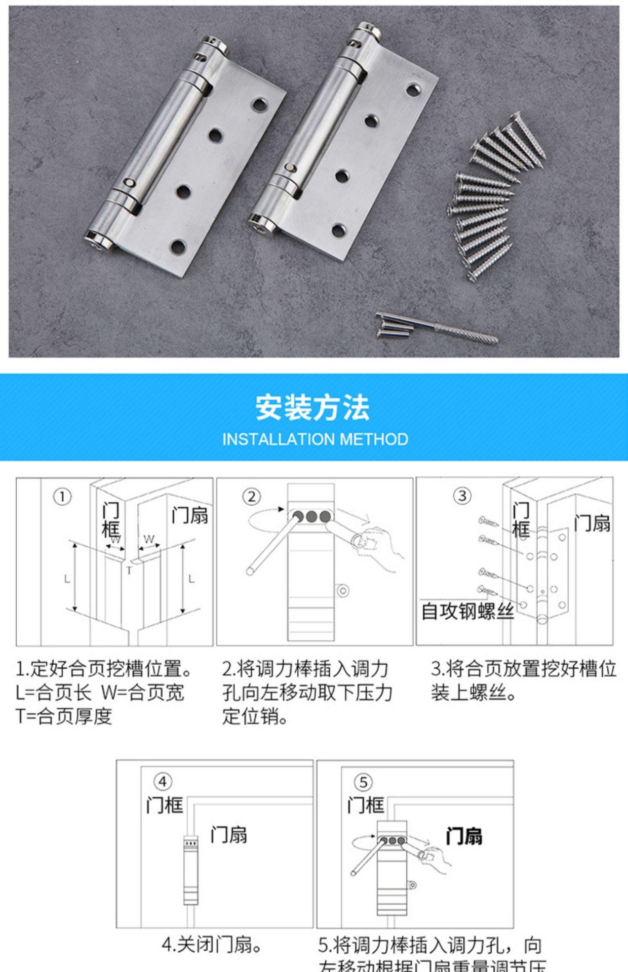 4inch hinge (one pack) - brushed stainless steel, 5inch black [buffer closing door, adjustable strength]/1 pri...