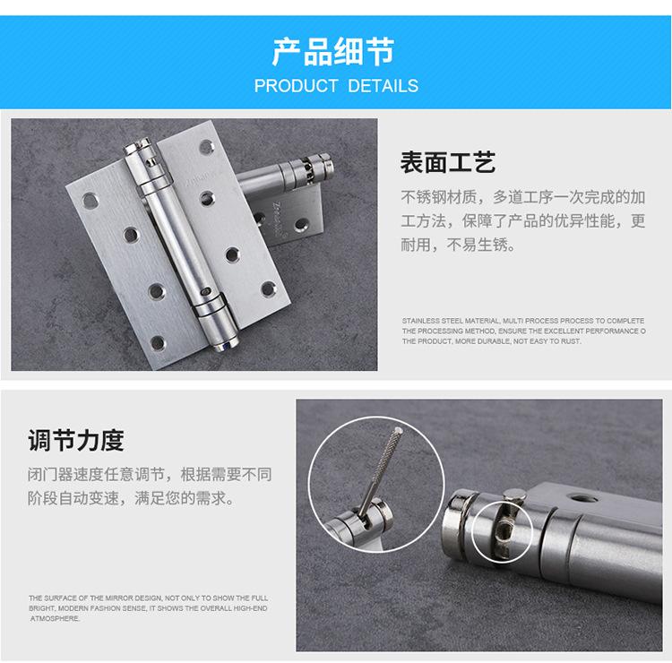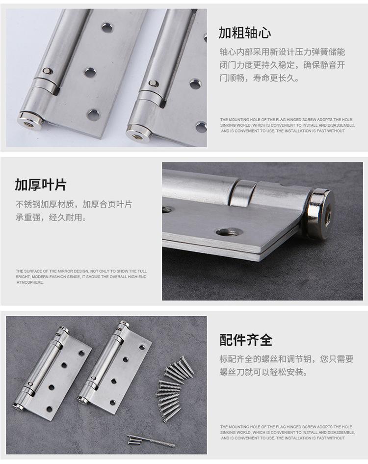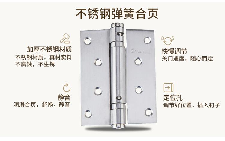 Bisagra de resorte de acero inoxidable, puerta invisible, cierre automático, sin amortiguación, bisagra de 4 pulgadas, cierrapuertas, bisagra de cierre automático
