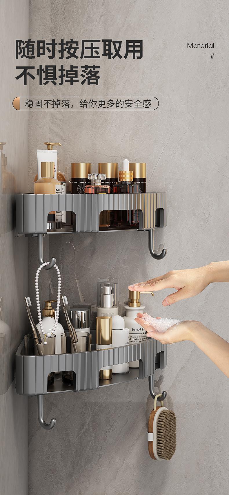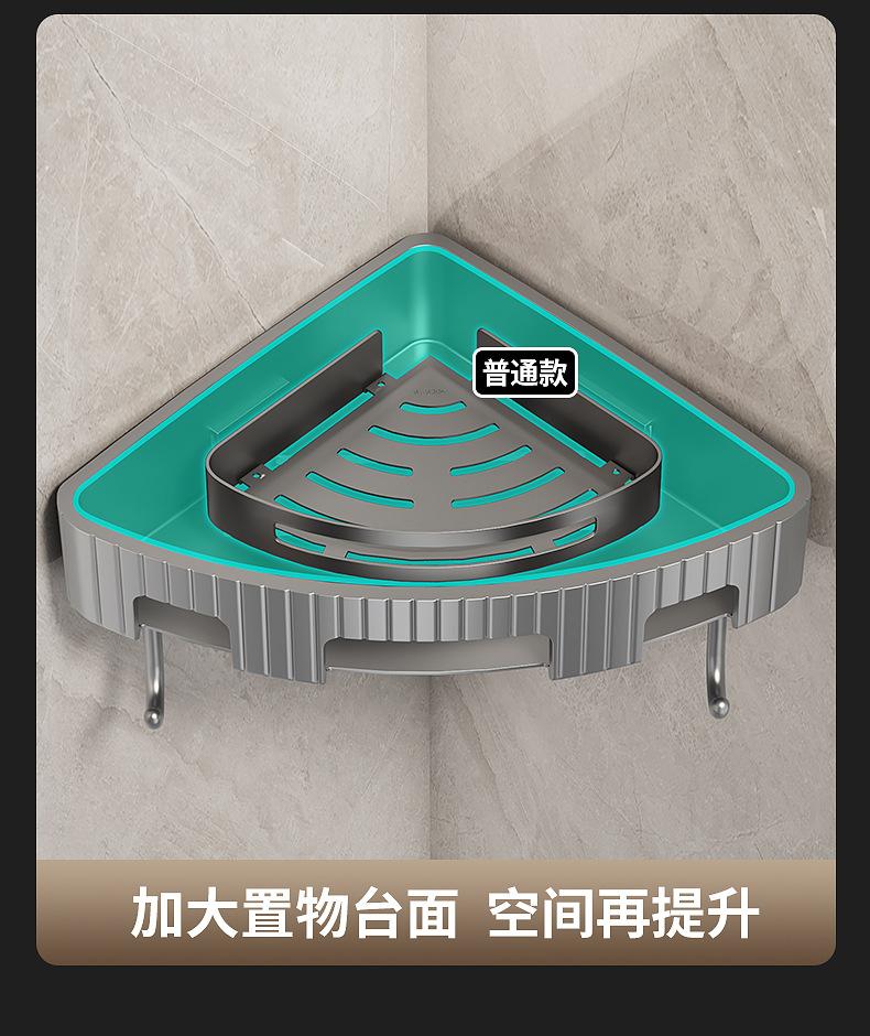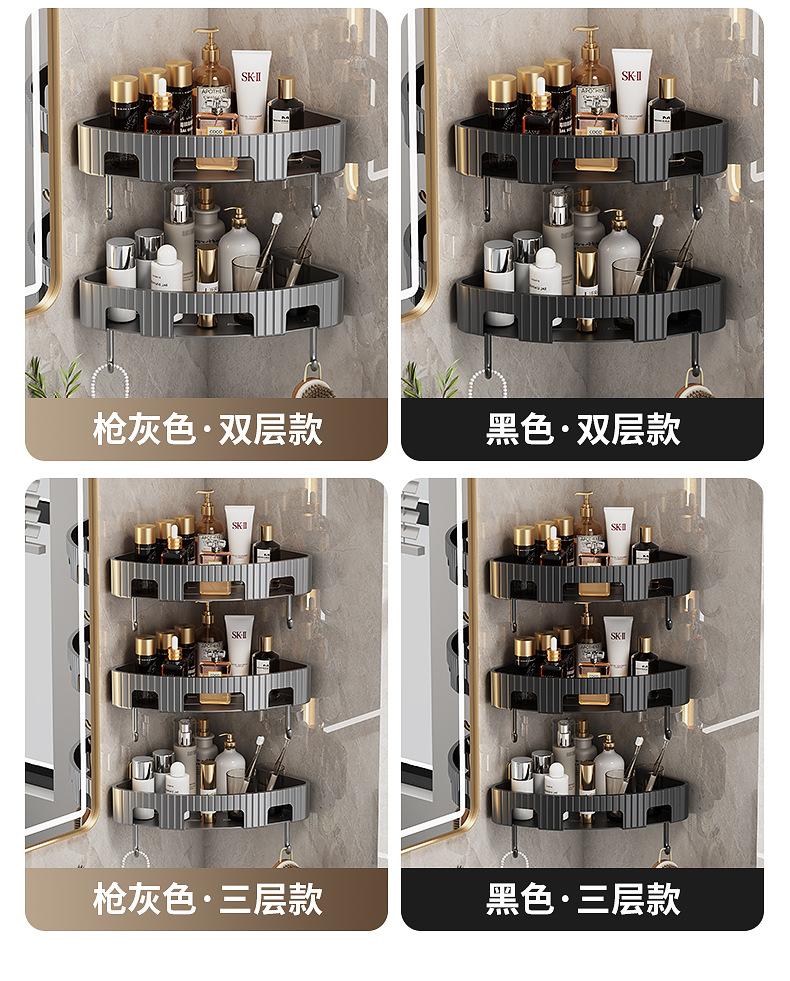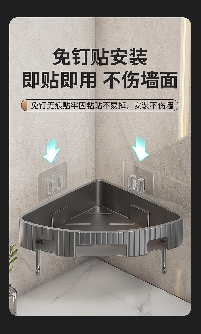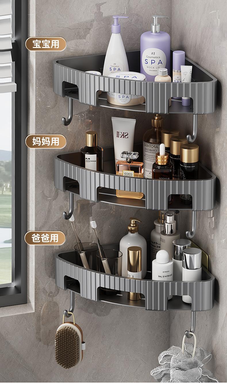 Estante de almacenamiento para baño, trípode de esquina de plástico sin perforaciones, estante de almacenamiento montado en la pared para baño, almacenamiento de pared