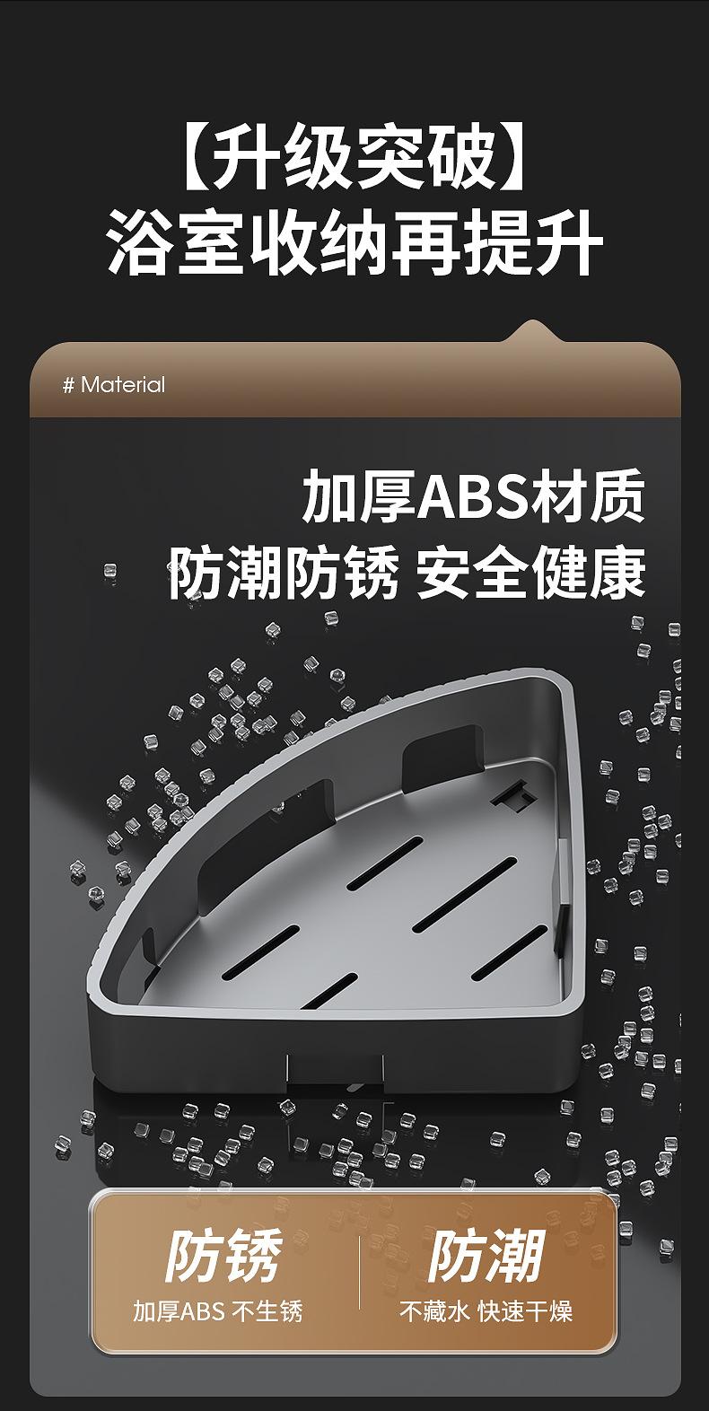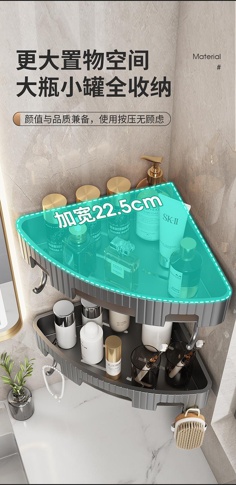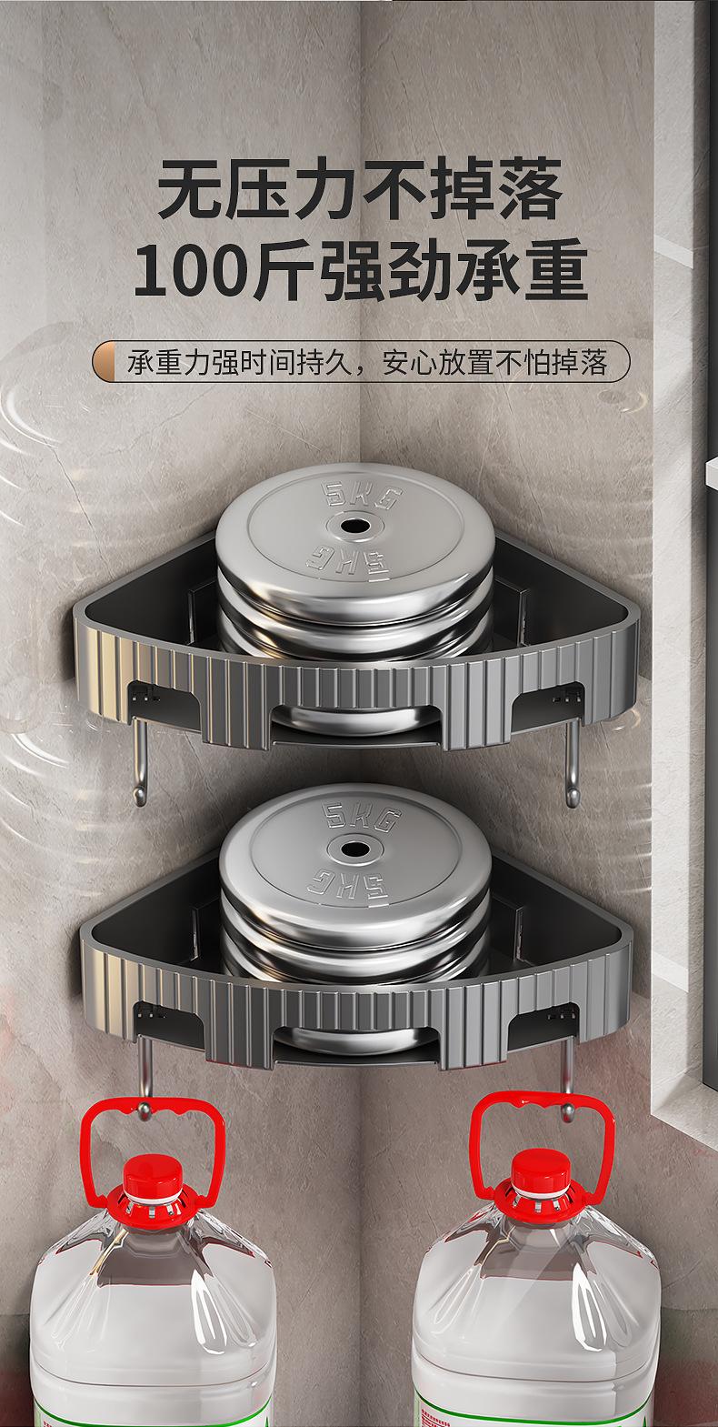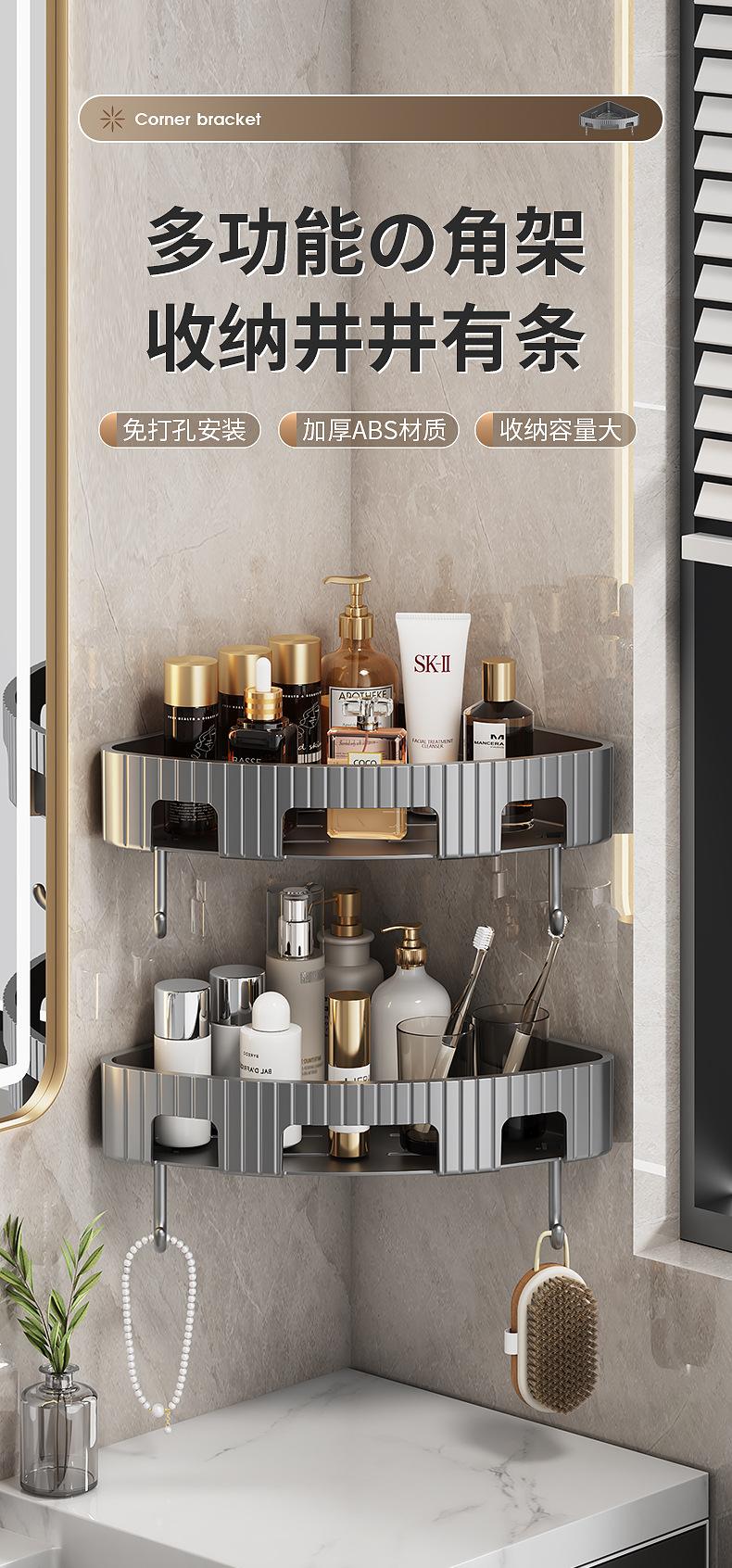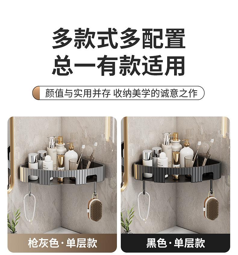 Estante de almacenamiento para baño, trípode de esquina de plástico sin perforaciones, estante de almacenamiento montado en la pared para baño, almacenamiento de pared