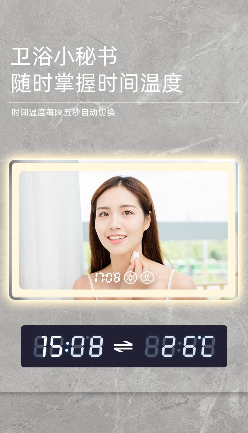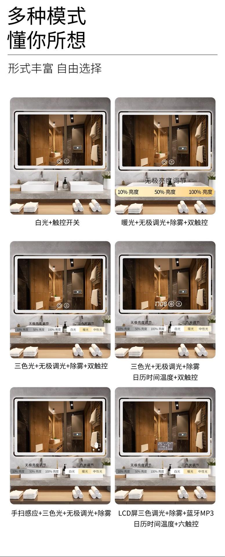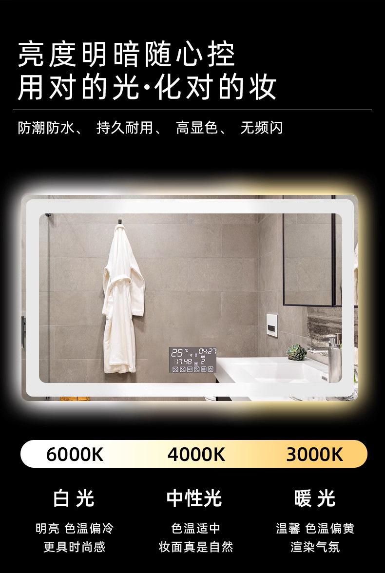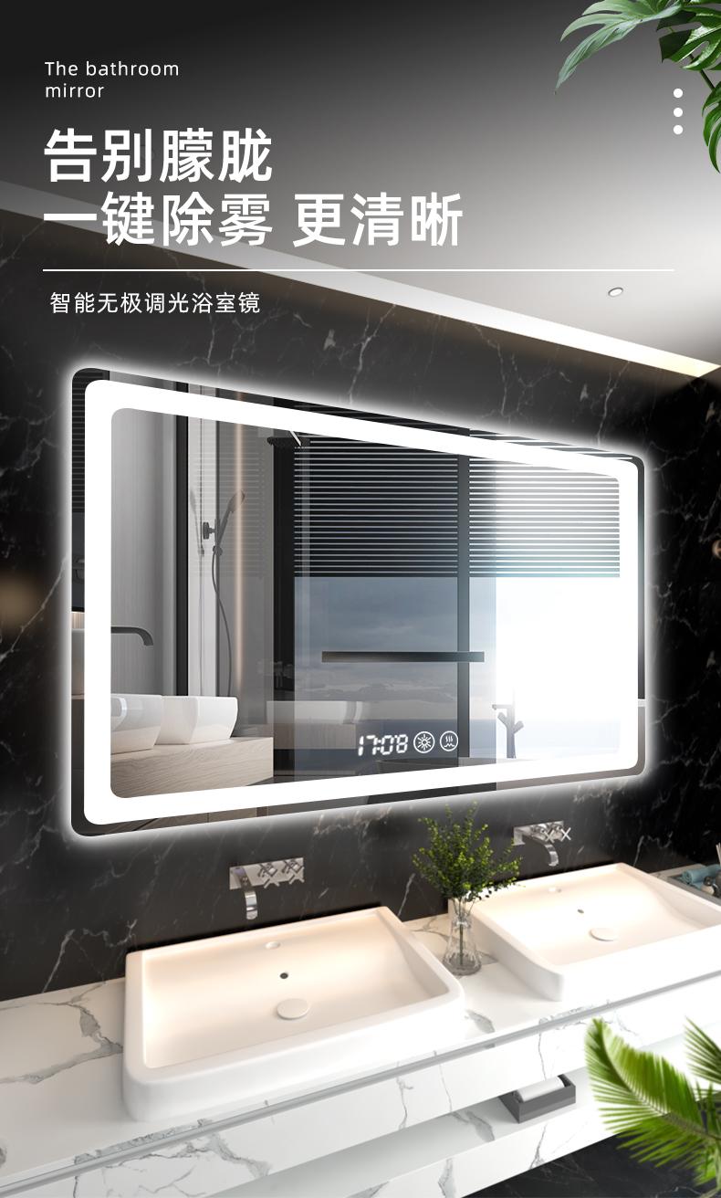 Espejo de baño inteligente LED con pantalla táctil con luz montado en la pared espejo de baño doméstico antivaho lavado de manos inodoro montado en la pared