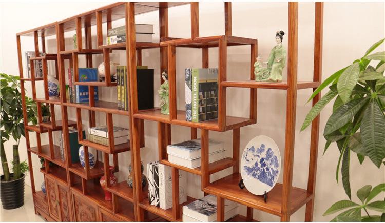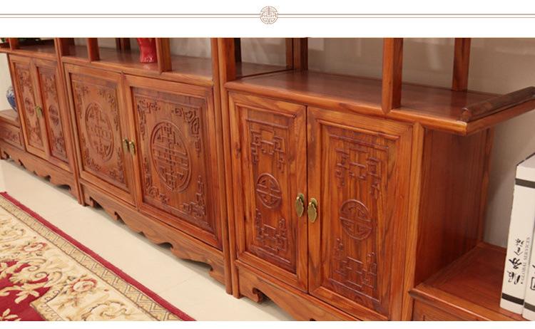 Estante antiguo de madera maciza estilo chino Duobao Pavilion, estante de almacenamiento para té de sala de estar antigua, estante para libros, estante para té de olmo, estante para museo