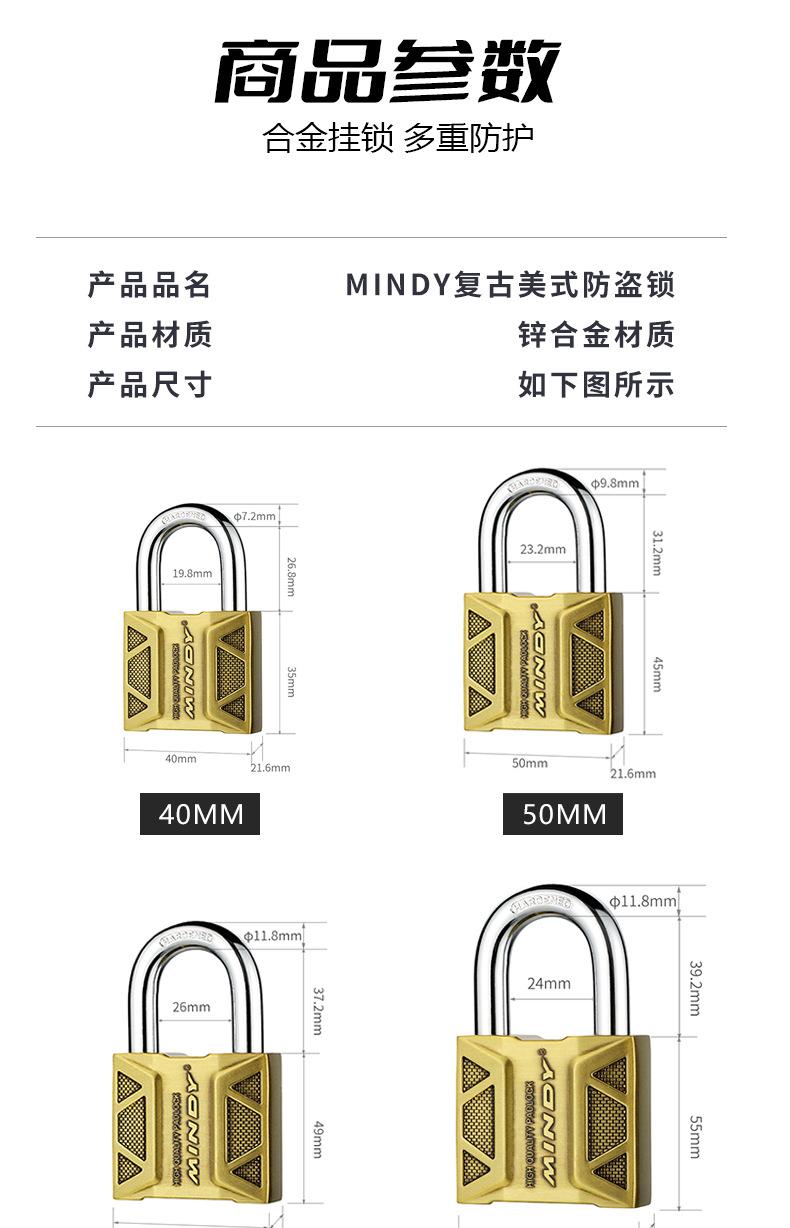 Candado Antirrobo Impermeable Antipalanca Robusto y Duradero Cerradura para Puerta Exterior Cerradura para Almacén Caja de Herramientas Aleación de Zinc Venta al por Mayor
