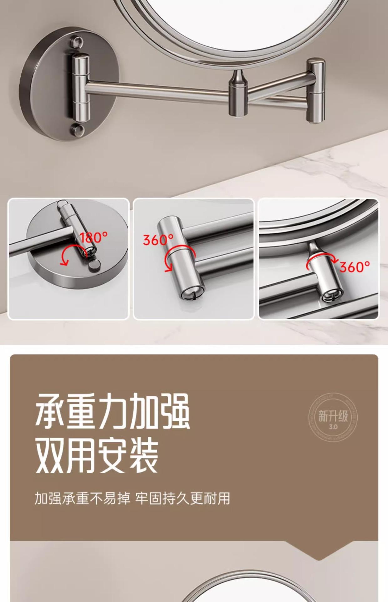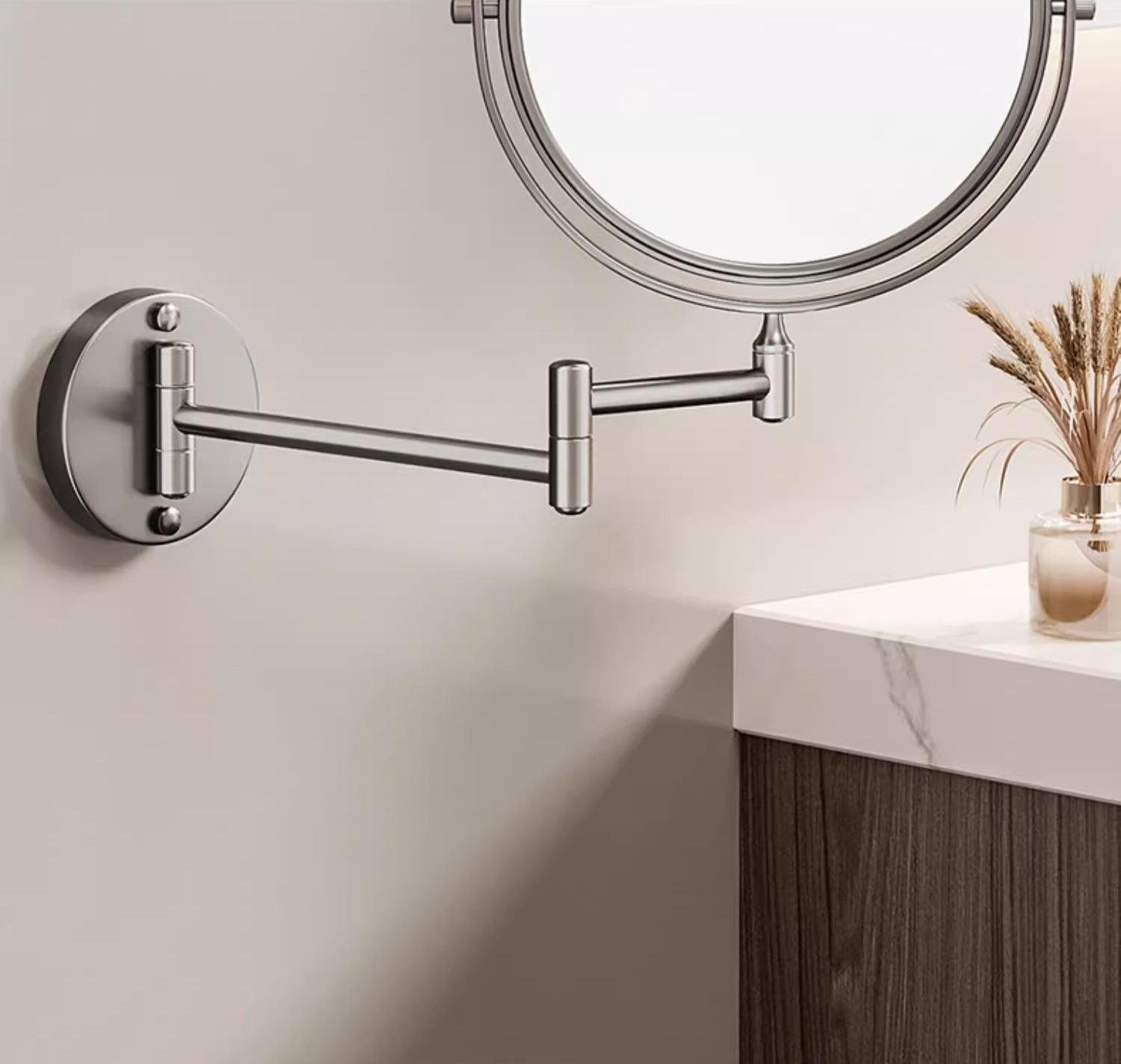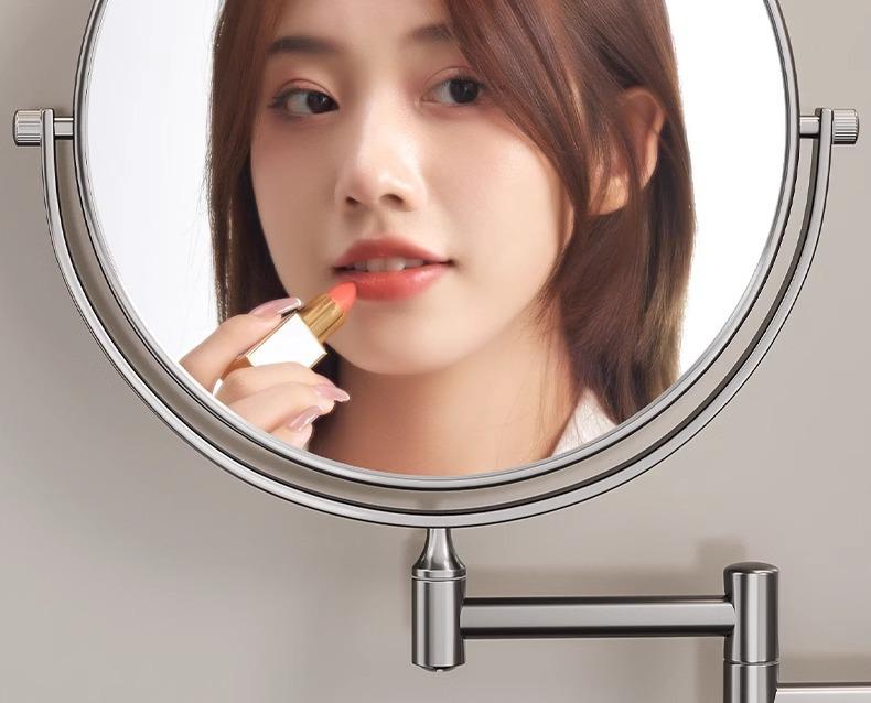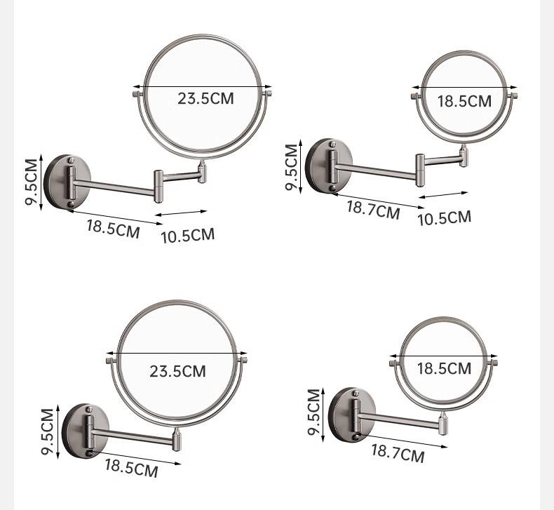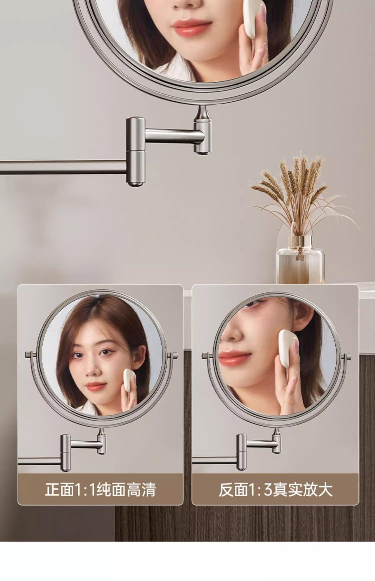 Espejo de Maquillaje de Baño Espejo Plegable Montado en la Pared Baño de Hotel Inodoro Retráctil Espejo para Lavarse la Cara Espejo de Belleza con Aumento