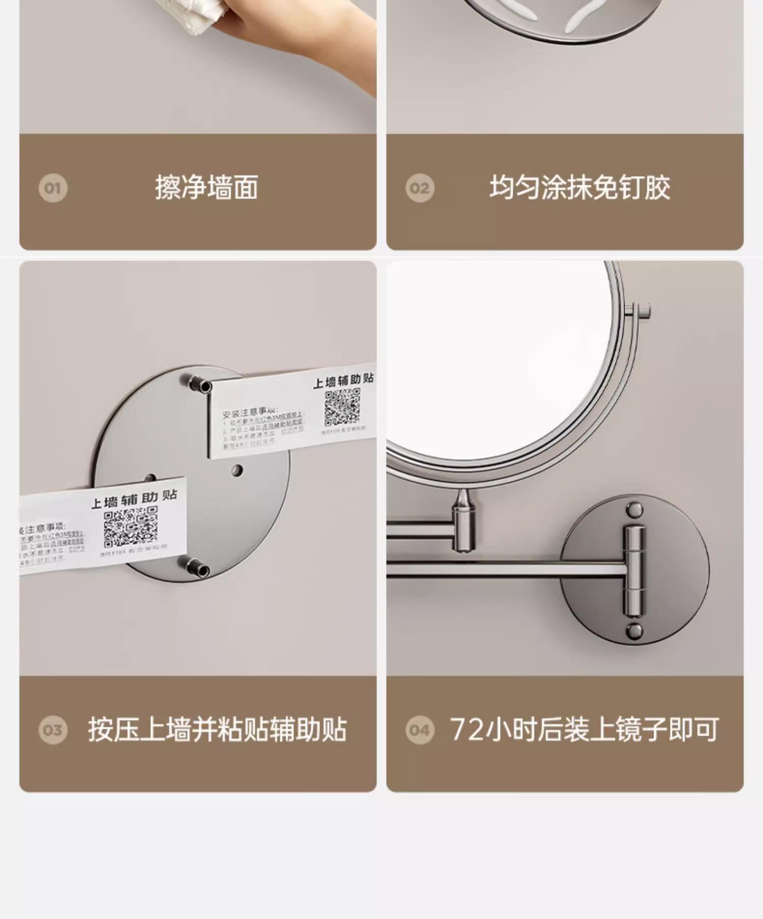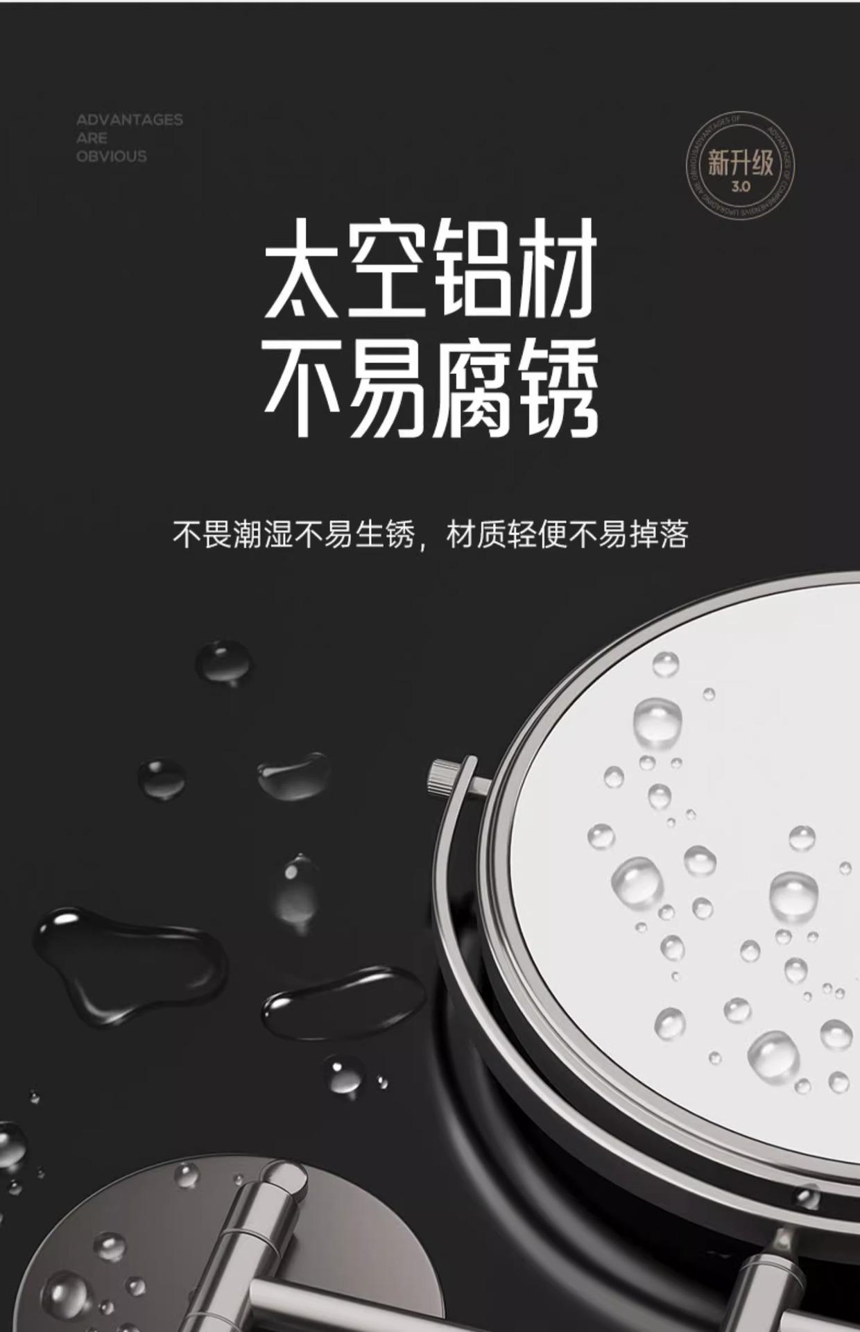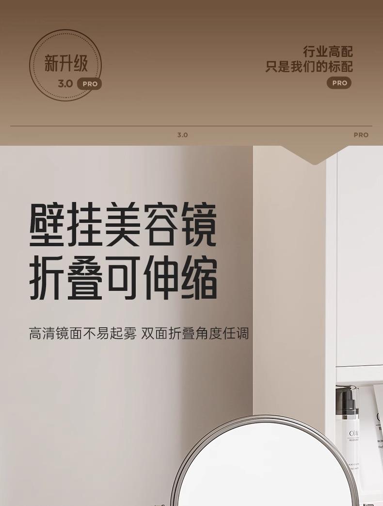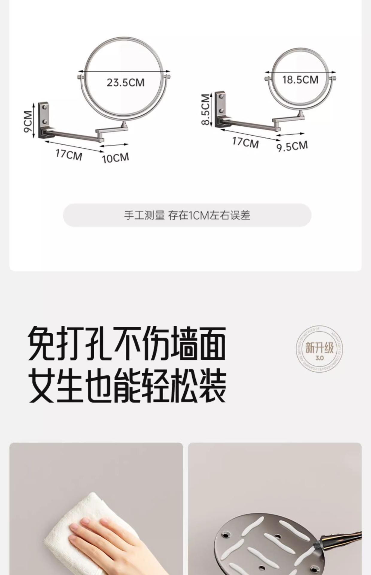 Espejo de Maquillaje de Baño Espejo Plegable Montado en la Pared Baño de Hotel Inodoro Retráctil Espejo para Lavarse la Cara Espejo de Belleza con Aumento