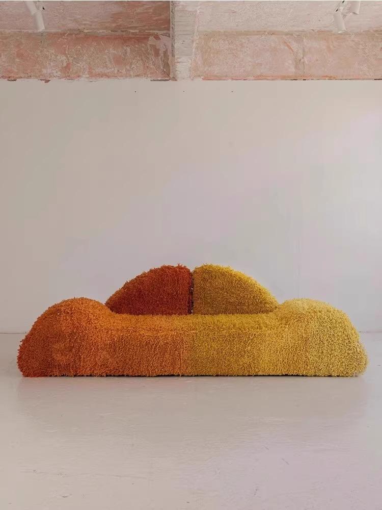 Sala de Estar Nórdica Retro Diseño Artístico Sentido del Espacio Sofá Sala de Exposición Estudio Combinación de Colores Dopamínicos Sofá con Forma