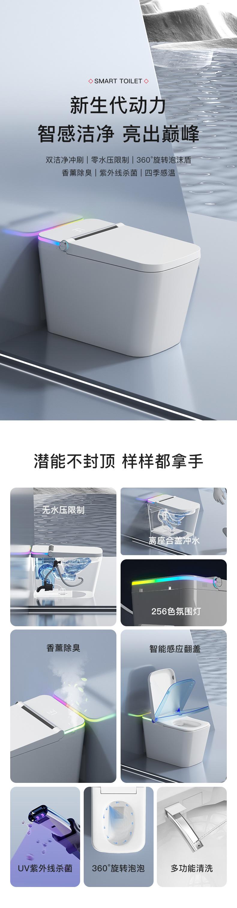 Inodoro inteligente de sifón integrado para el hogar esterilización UV sin límite de presión de agua inodoro con aromaterapia de burbujas incorporada