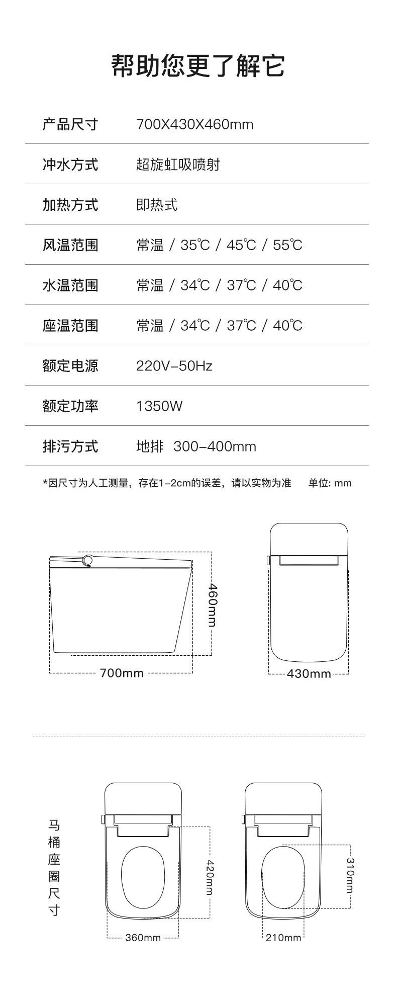 Asiento de inodoro inteligente totalmente automático integrado para hogar, apartamento pequeño, sin límite de presión de agua, asiento de inodoro con calentamiento instantáneo