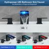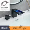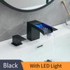 Grifo de Lavabo Negro de Tres Agujeros Baño Lavabo Simple Gabinete de Baño Mezcla Fría y Caliente Luz LED Grifo Cascada