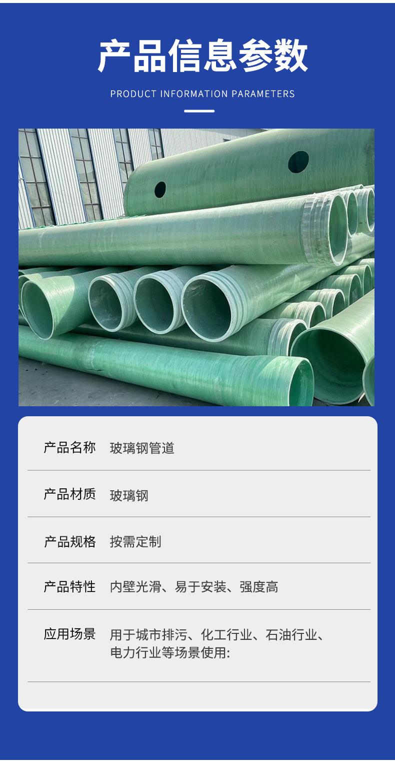 Tubería de plástico reforzado con fibra de vidrio, tubería de arena, tubería de drenaje, tubería de ventilación, tubería de cable, tubería de suministro de agua municipal y drenaje, accesorios de tubería de plástico reforzado con fibra de vidrio
