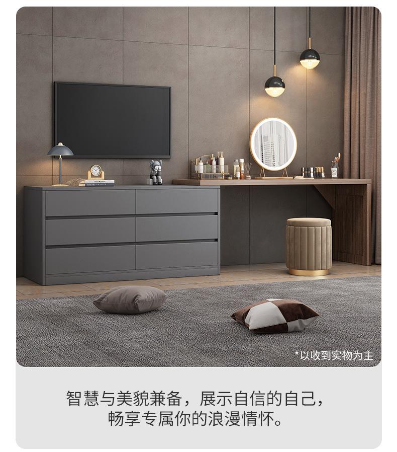 Starry sky and moon gray + brown silk paulownia (120cm table + 100cm cabinet), Starry sky and moon gray + brow...