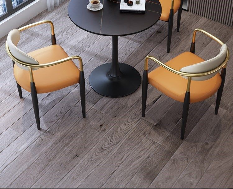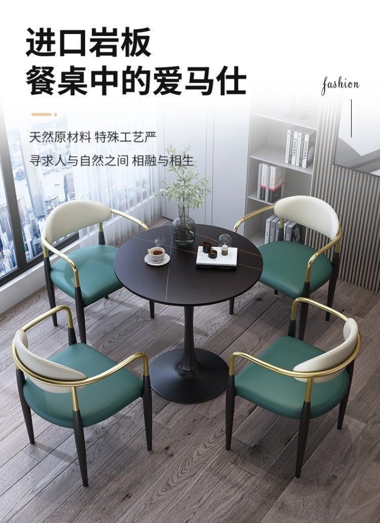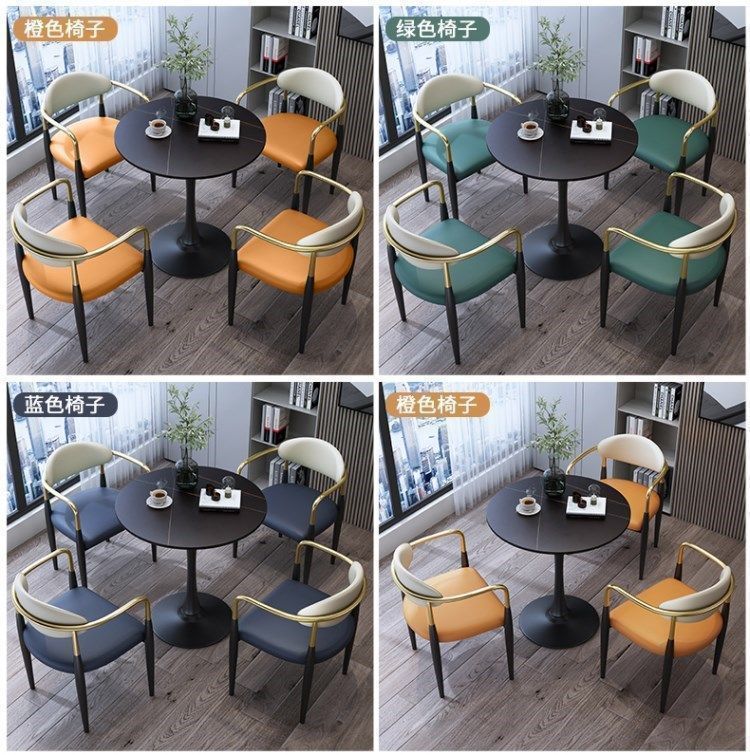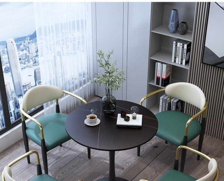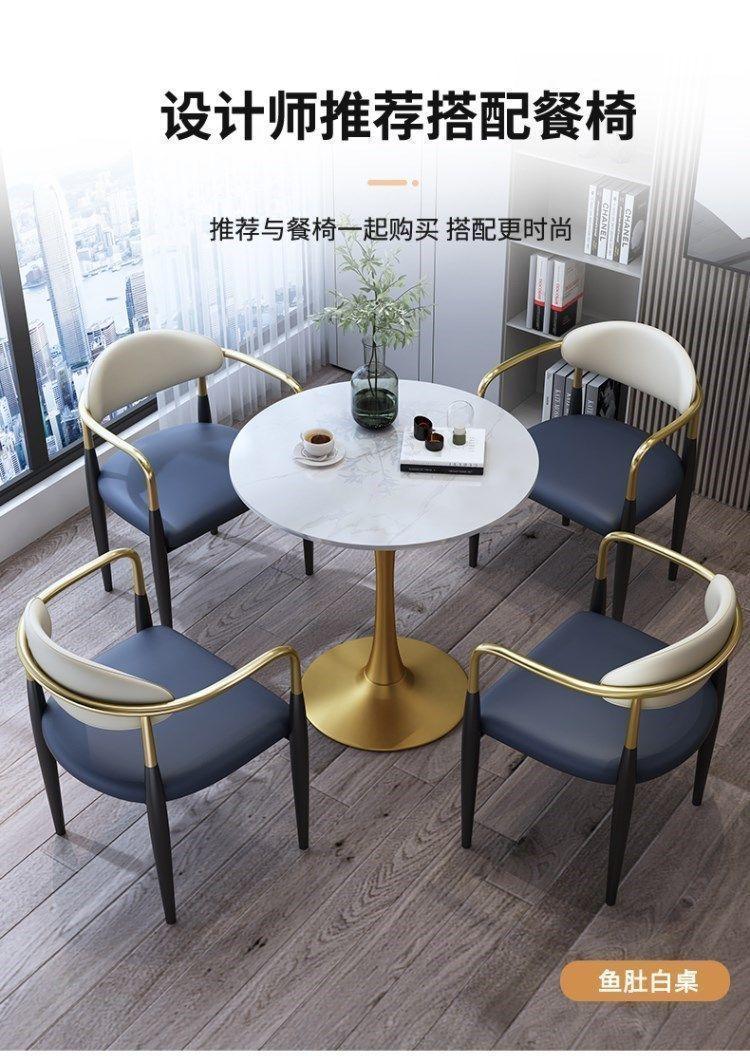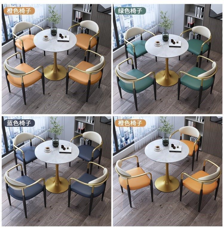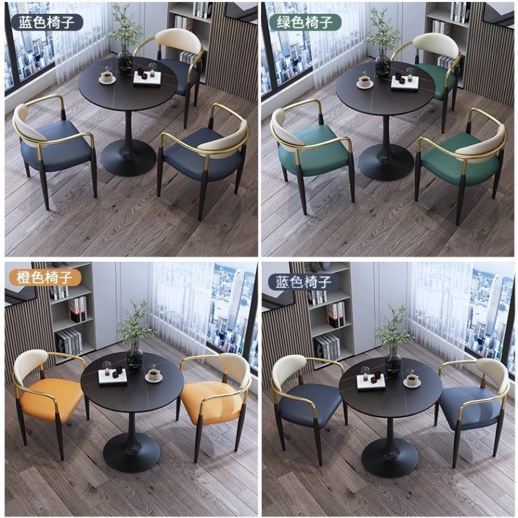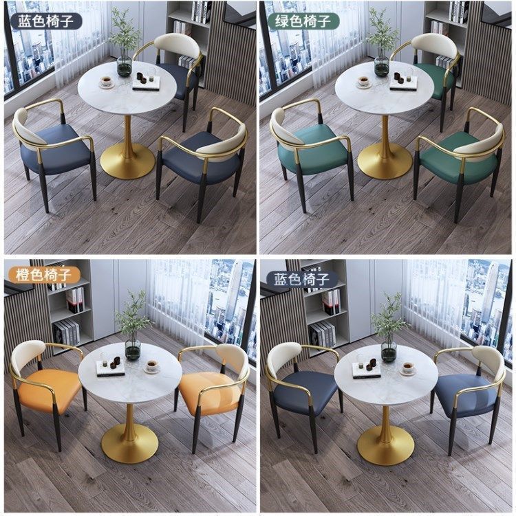 Mesa de negociación y silla de lujo con luz nórdica, redonda, combinada, ideal para recepción de celebridades de Internet, té con leche y balcón, mesa informal pequeña y sencilla.