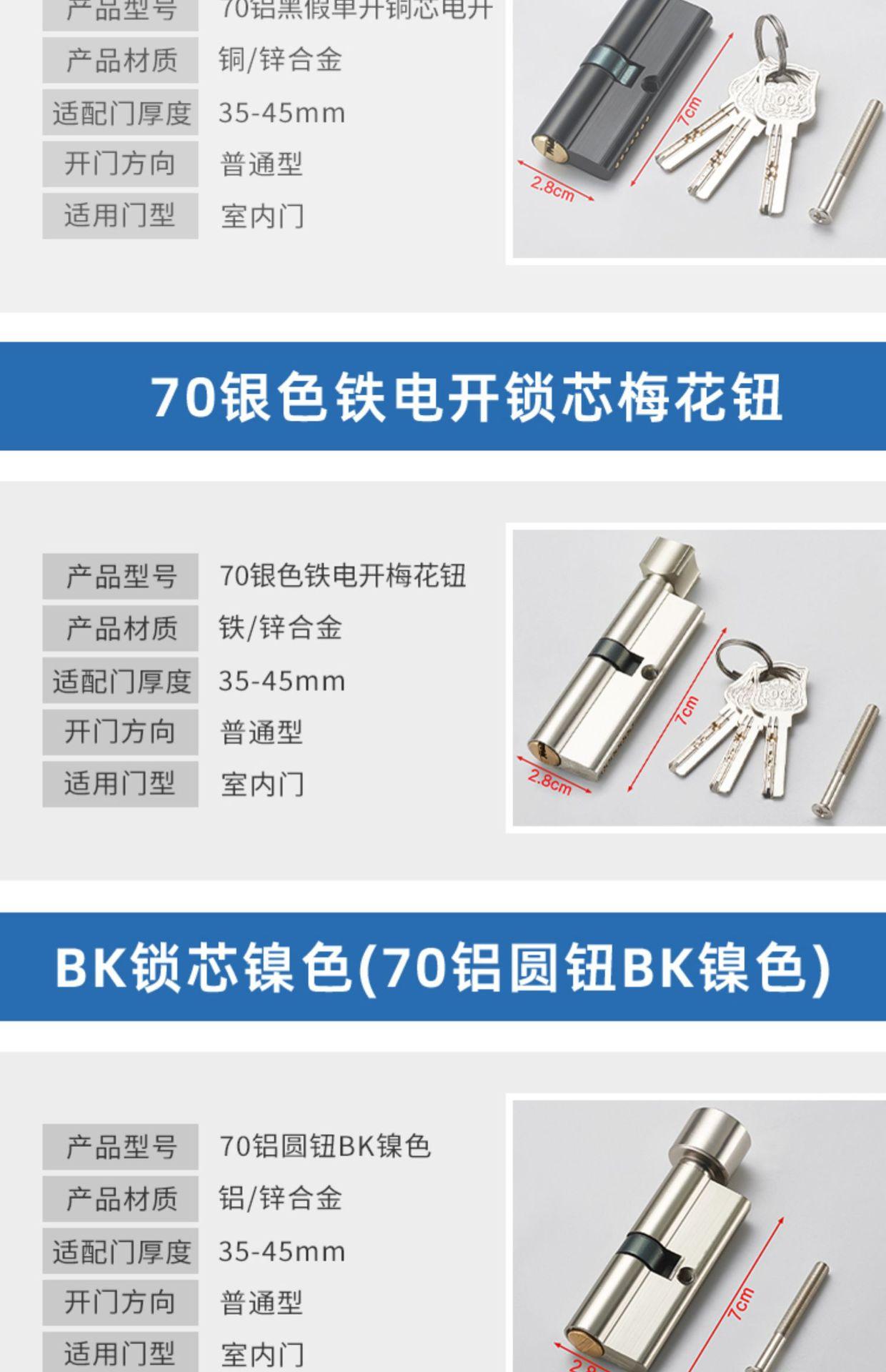 70 black lock cylinder + lock body-35-45mm-universal type-with key