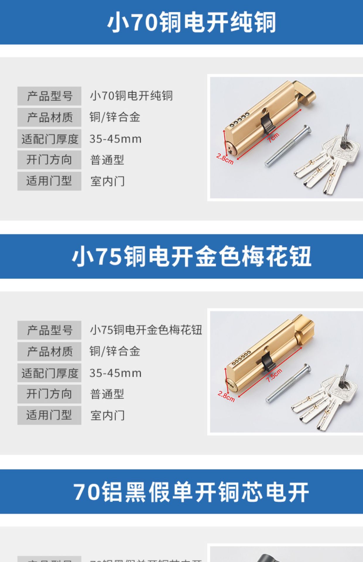 Cerradura de cobre para puerta de dormitorio, cilindro antirrobo, cerradura de madera para interior, cuerpo de cerradura, accesorios, herrajes, puerta interior, hogar, tipo universal