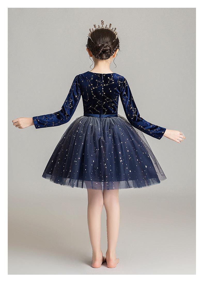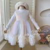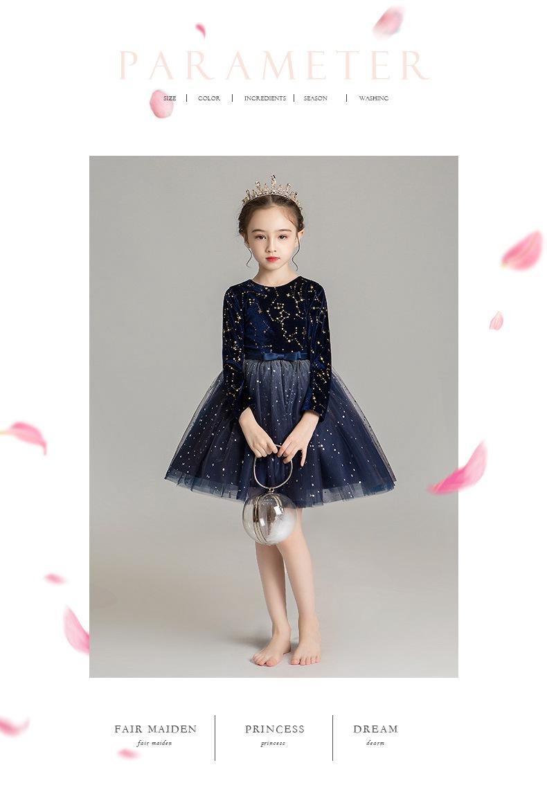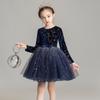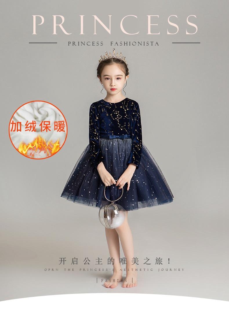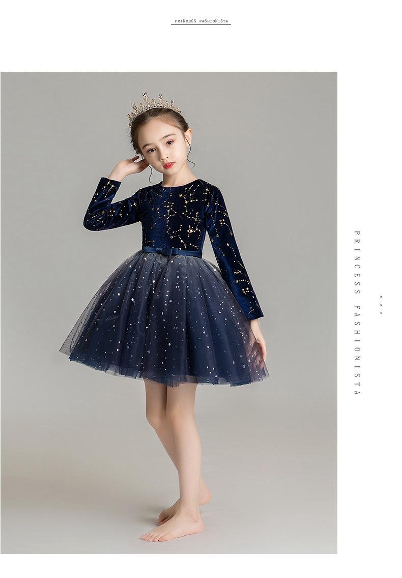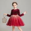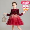 Vestido de noche para niñas, vestido de princesa para niñas, vestido de novia para niñas de flores, ropa de actuación de piano de manga larga, ropa de invierno con forro polar grueso
