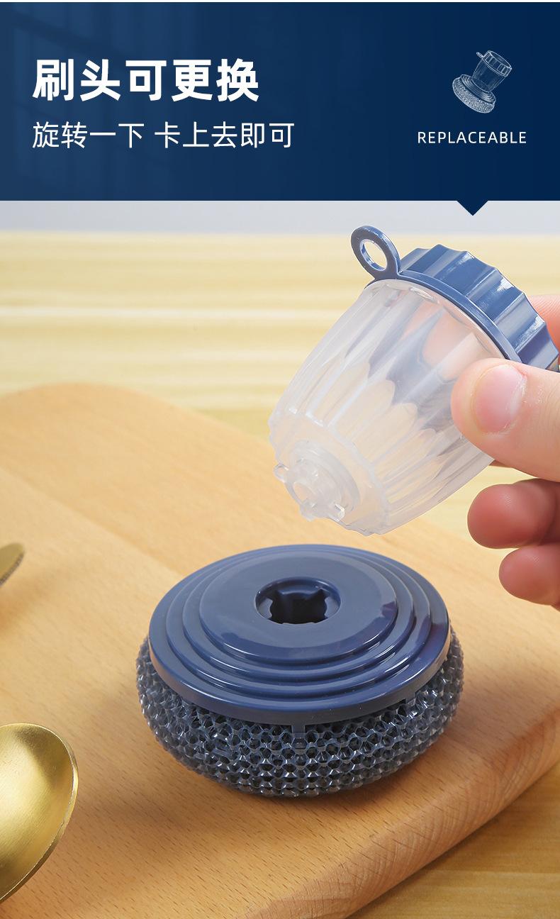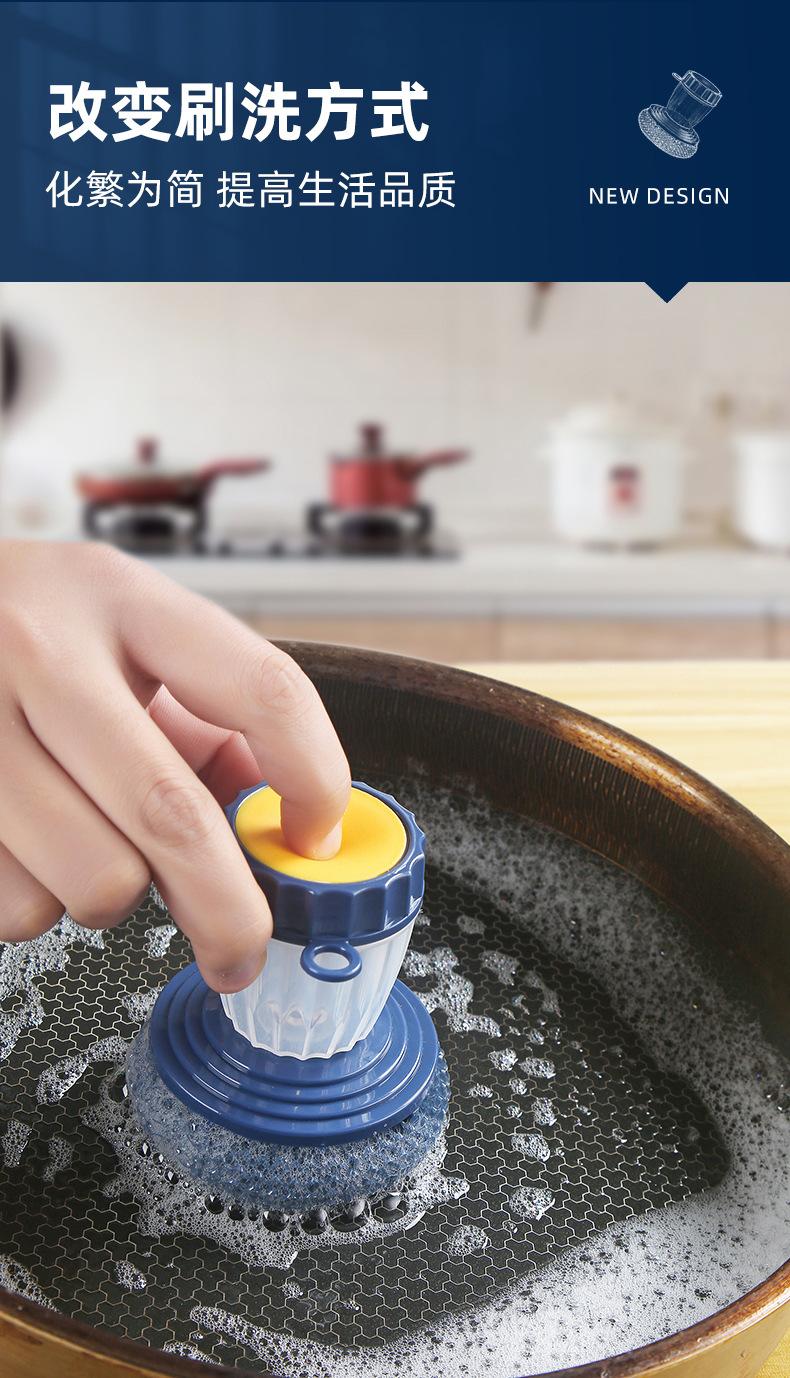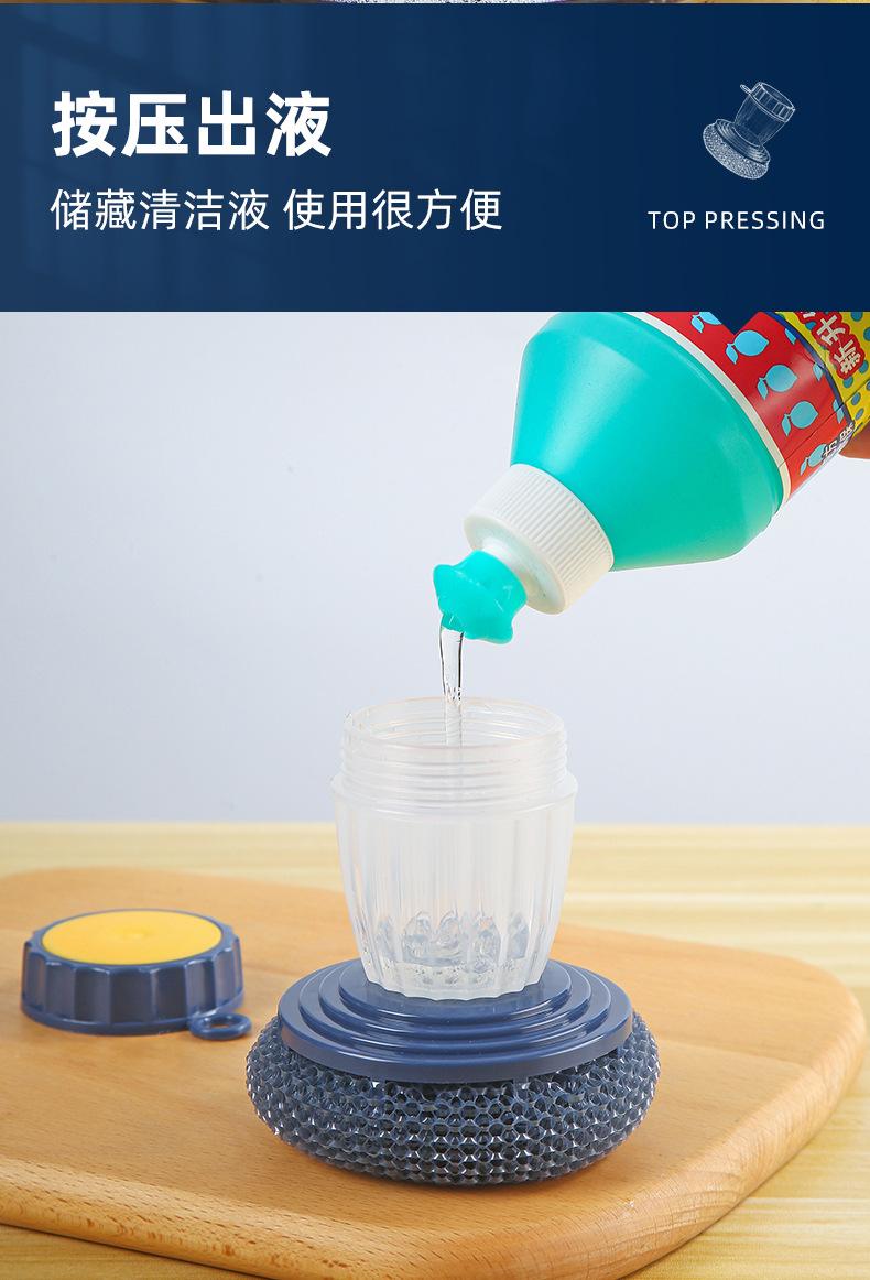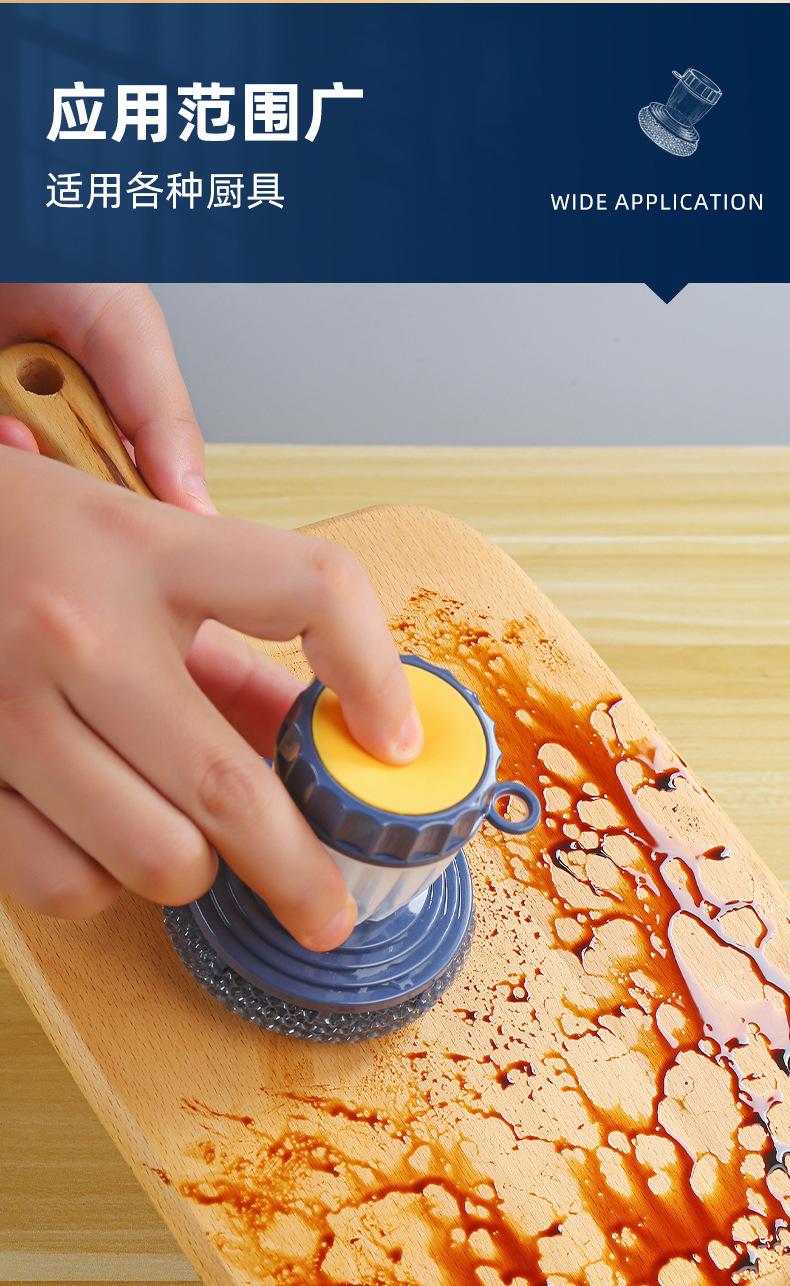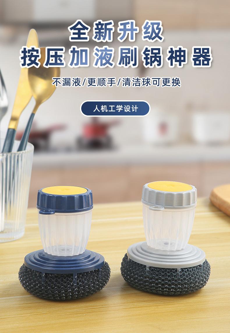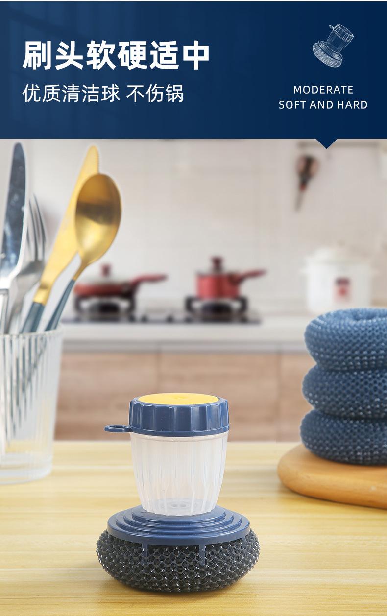 Cepillo de prensa para detergente líquido automático, cepillo para platos, cepillo de plástico creativo para ollas, cepillo de limpieza para el hogar, bola de alambre de acero