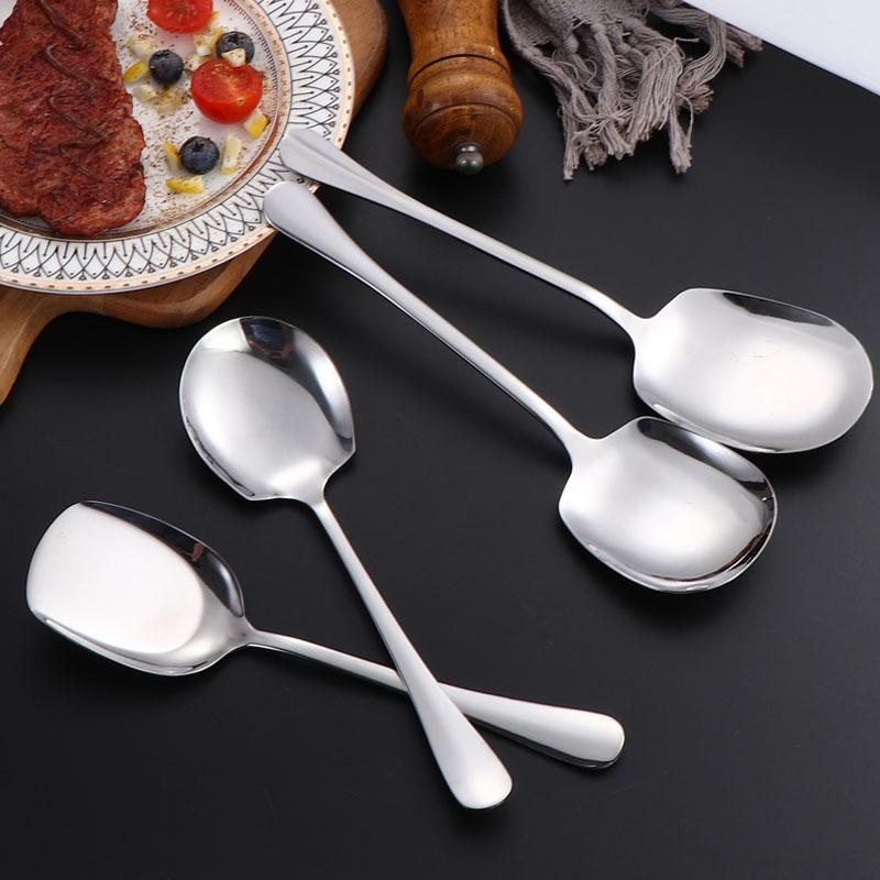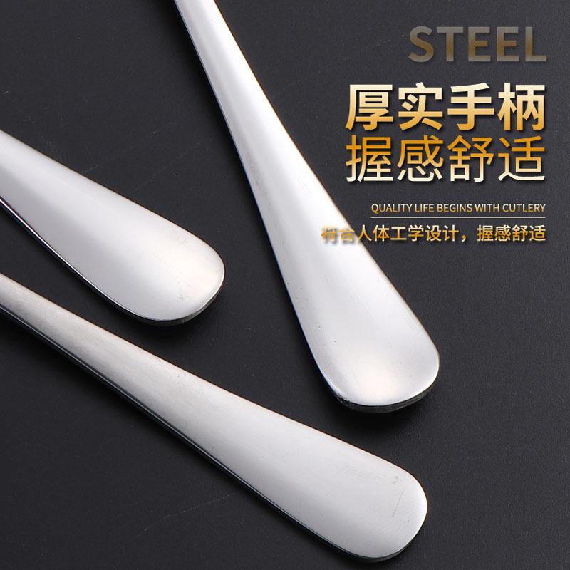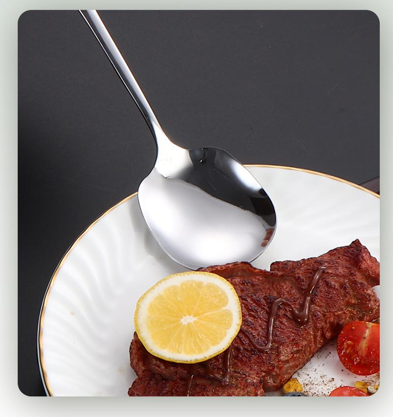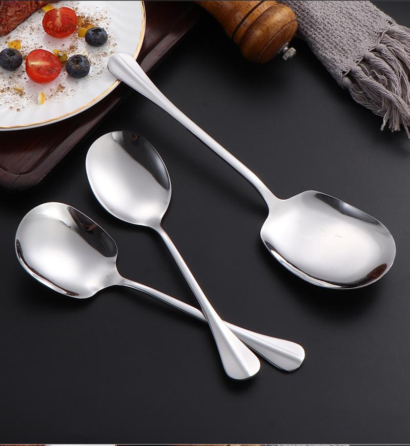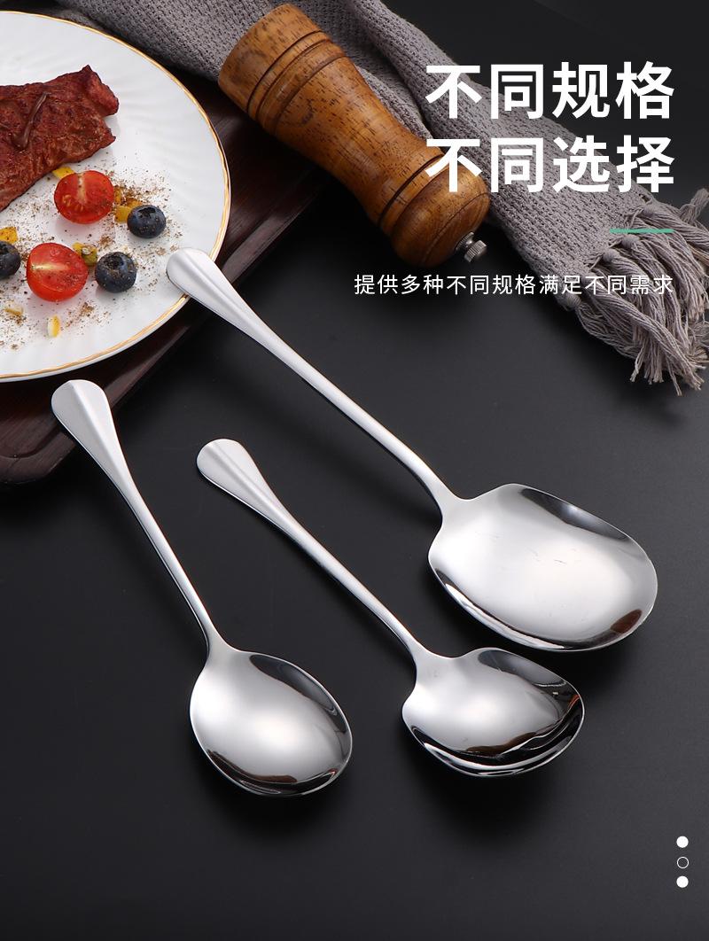 Cuchara de acero inoxidable para uso público en hoteles, restaurantes, buffets, cucharas, tenedores y cucharas de mango largo, con logotipo impreso.