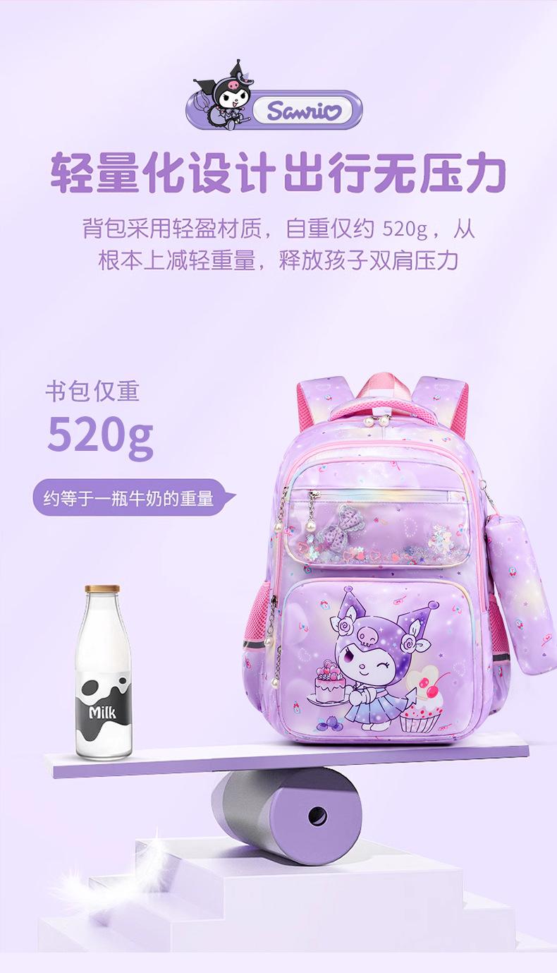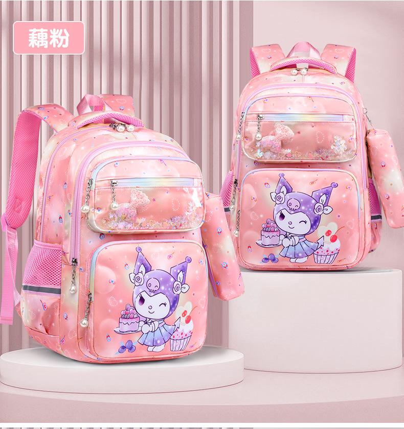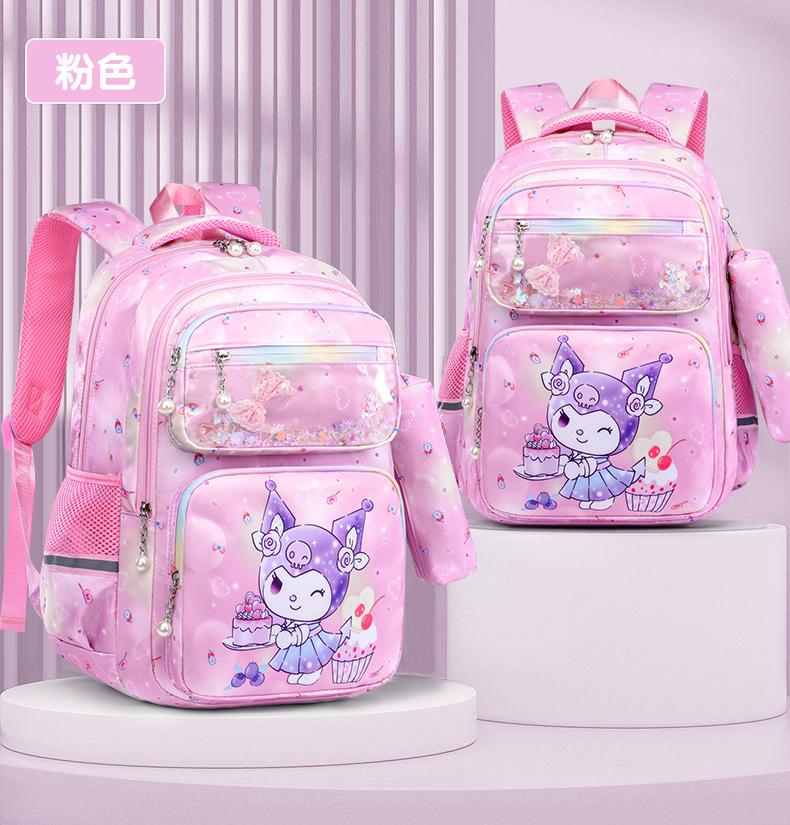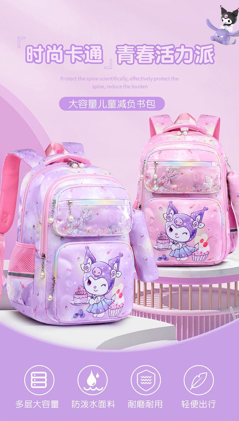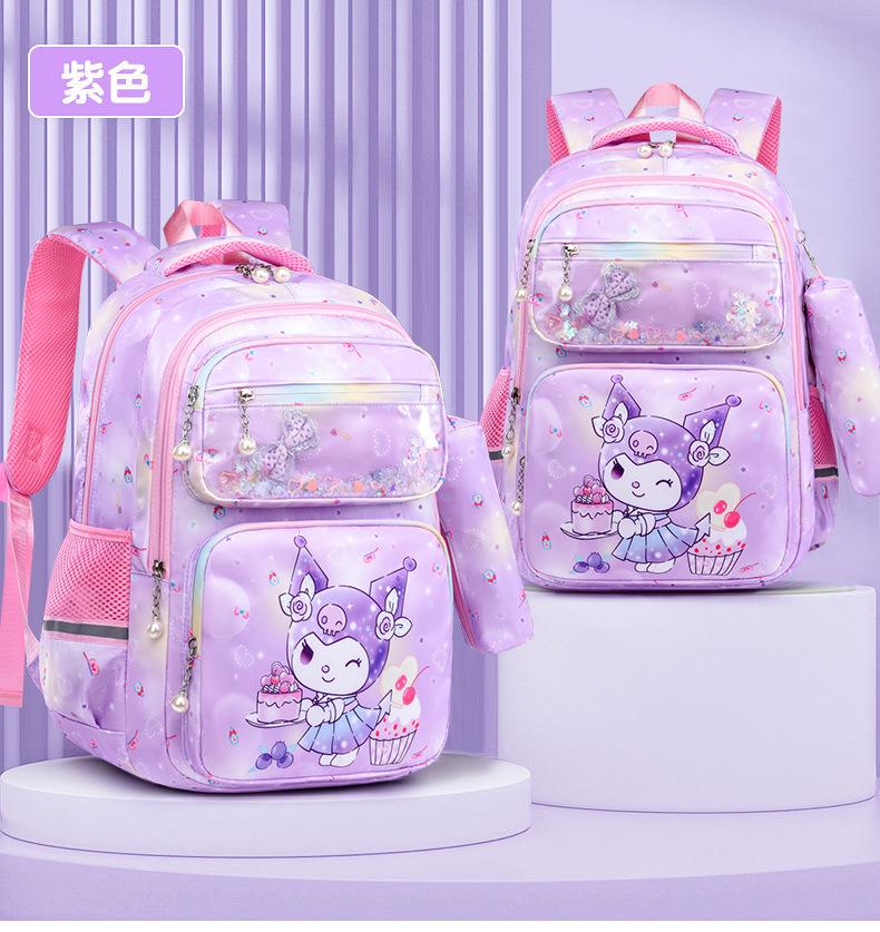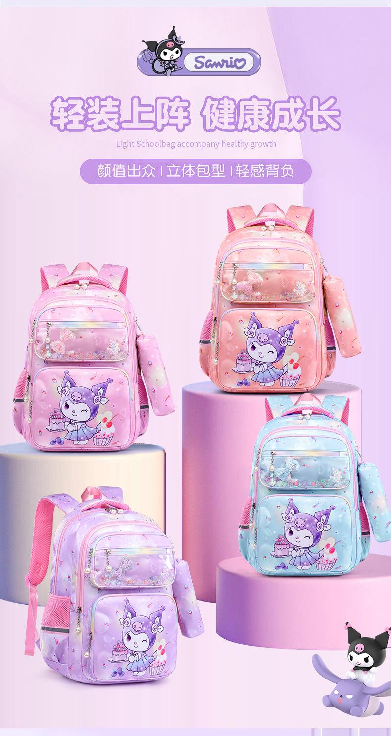 Mochila ligera Kulomi Sanrio para estudiantes de primaria con estuche para lápices y diseño de dibujos animados de moda y gran valor en colores.