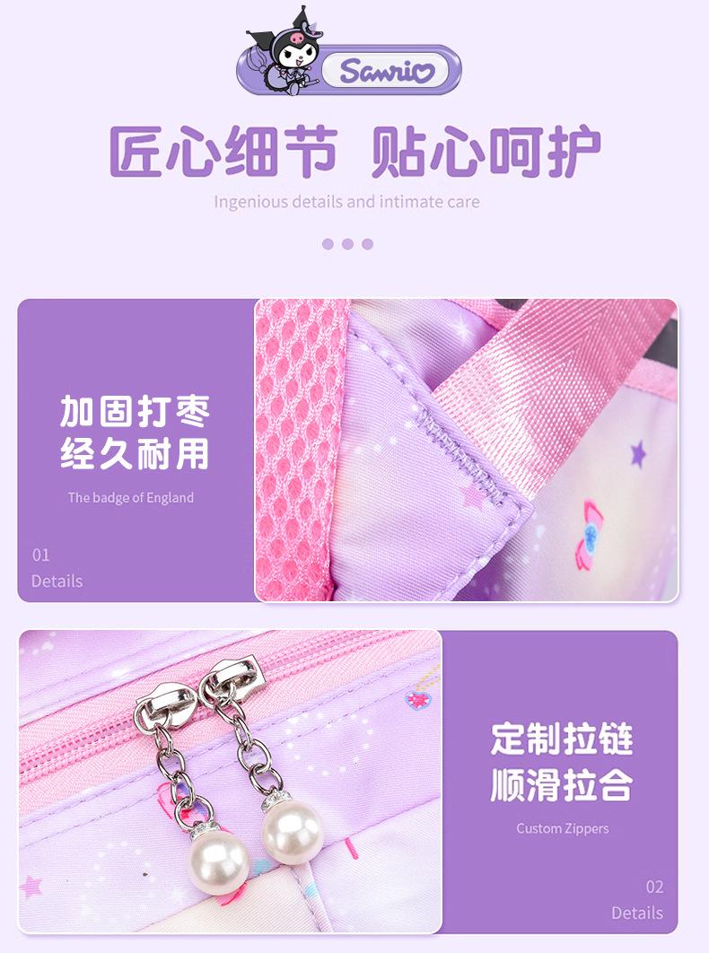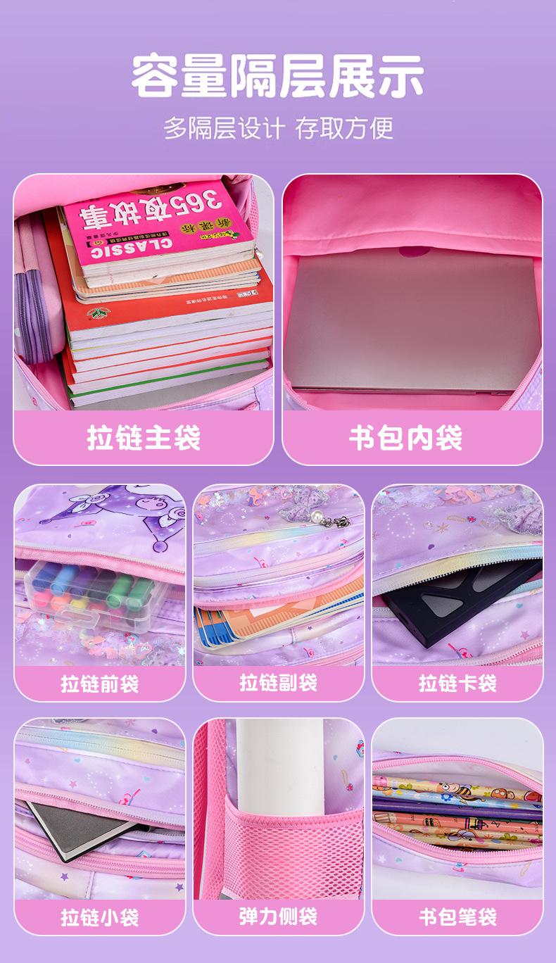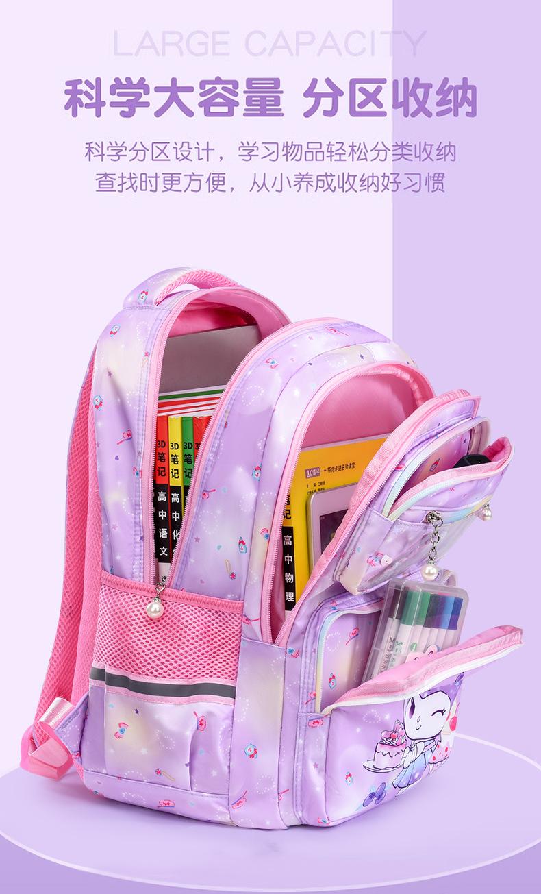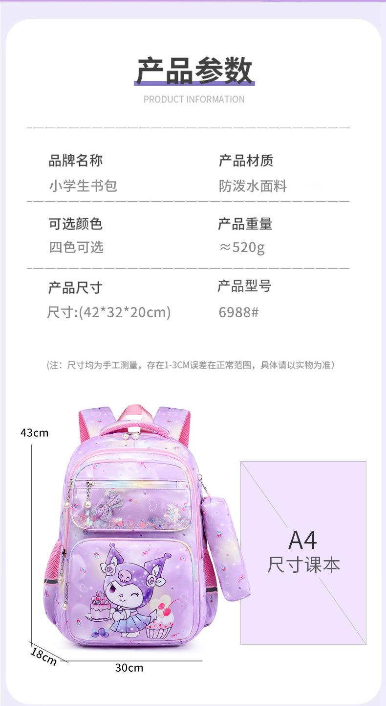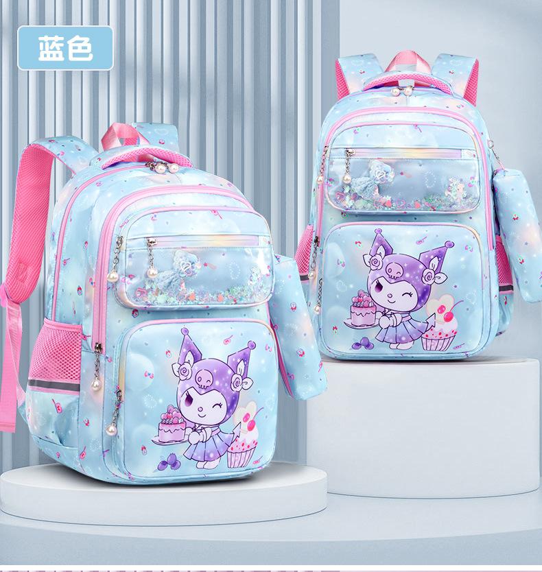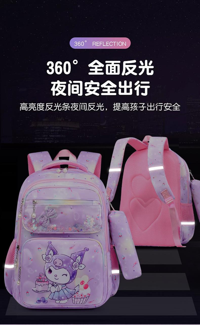 Mochila ligera Kulomi Sanrio para estudiantes de primaria con estuche para lápices y diseño de dibujos animados de moda y gran valor en colores.