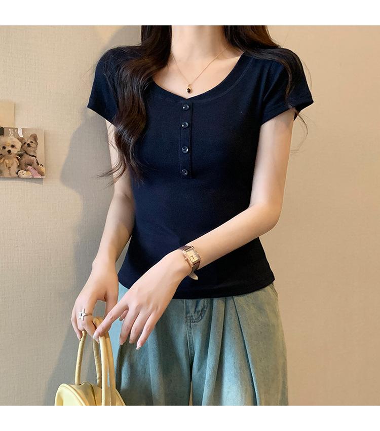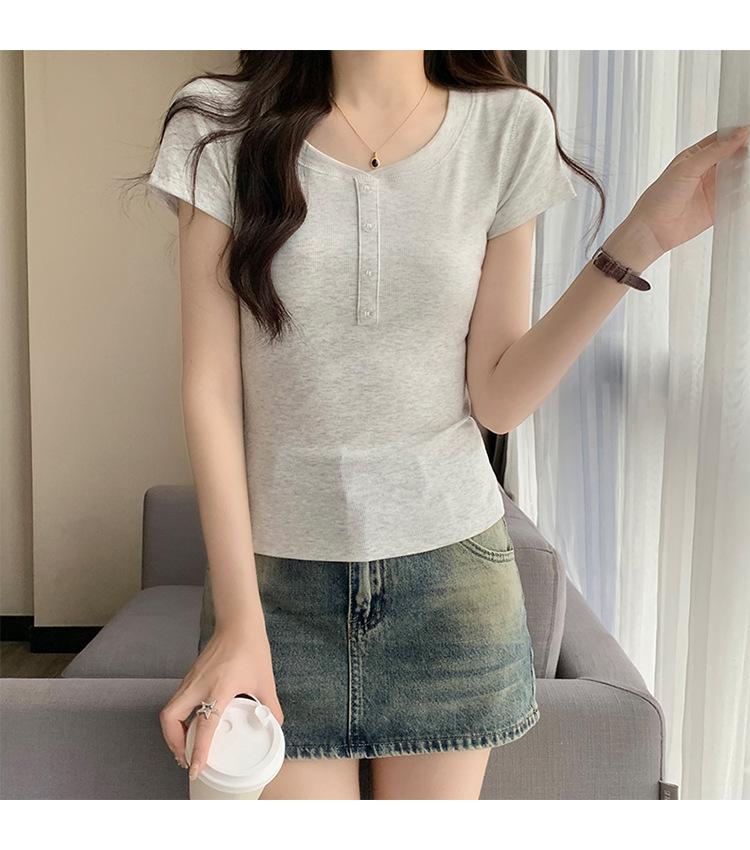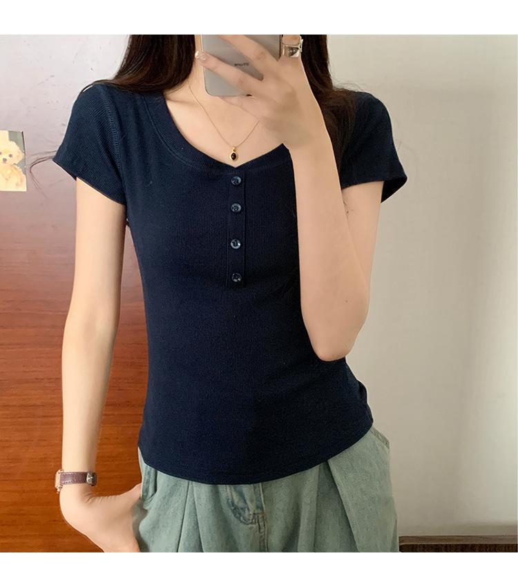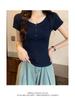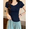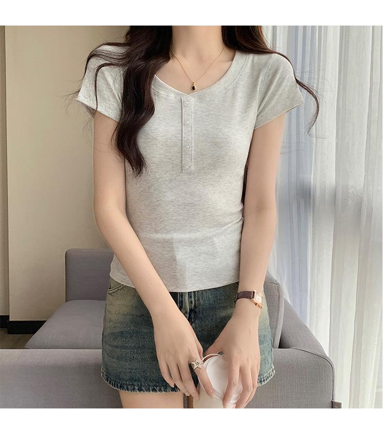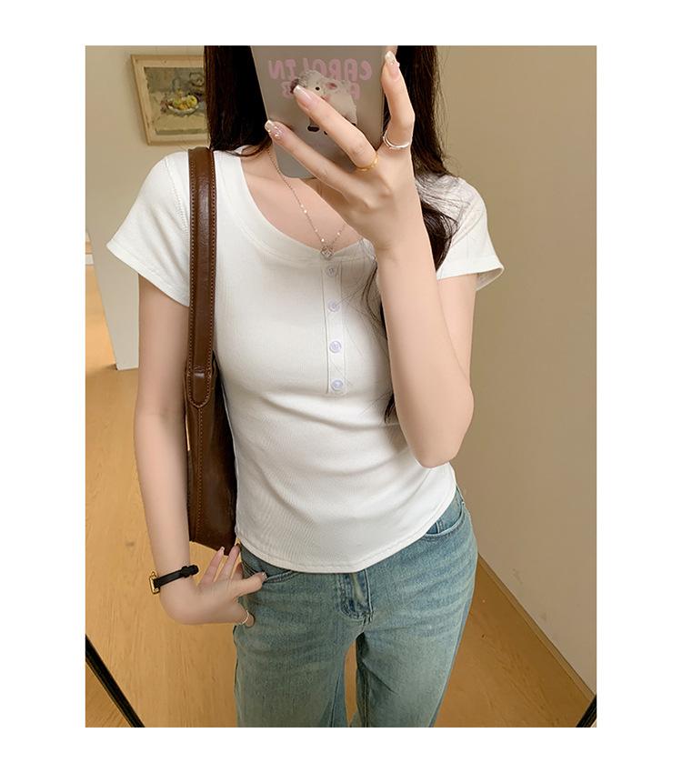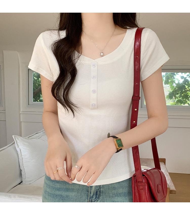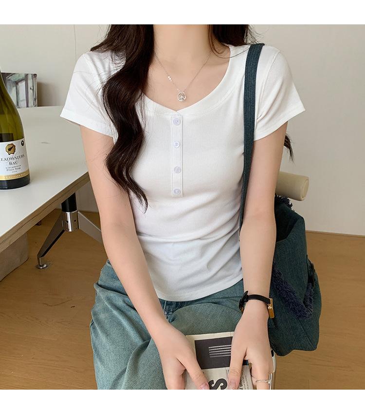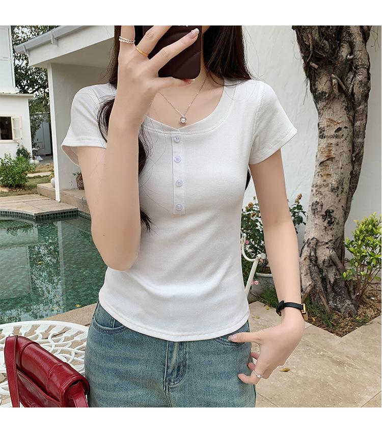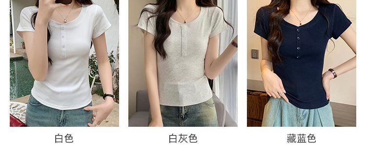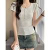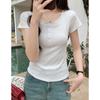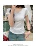 Ropa de mujer, camiseta blanca de manga corta con hombro recto para mujer