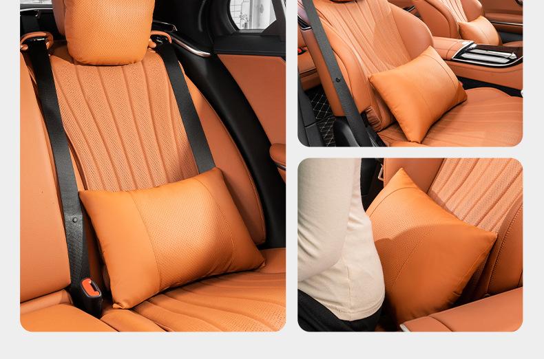 Reposacabezas de coche Igual que la almohada cervical Reposacabezas Almohada para asiento de coche Almohada de cintura real para coche Almohada para el cuello Almohada de cintura de cuero