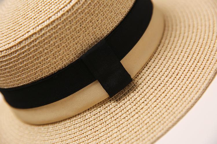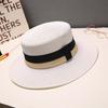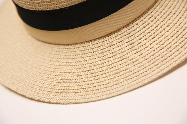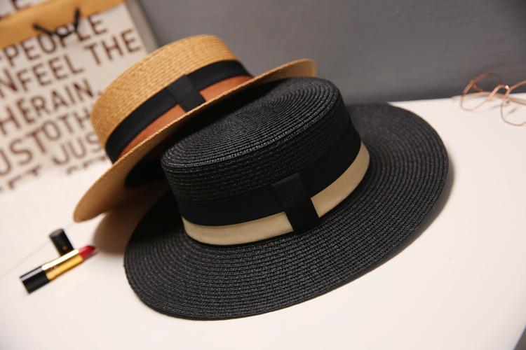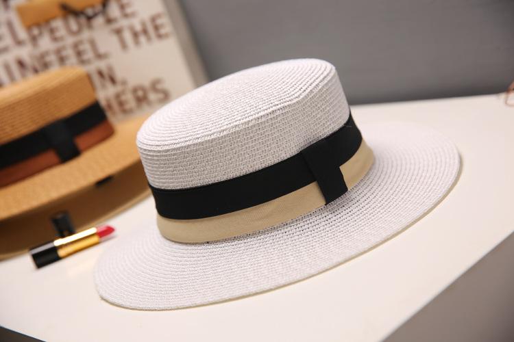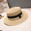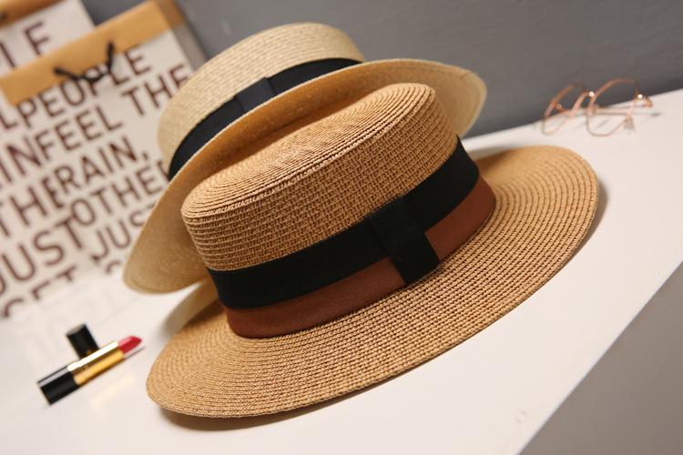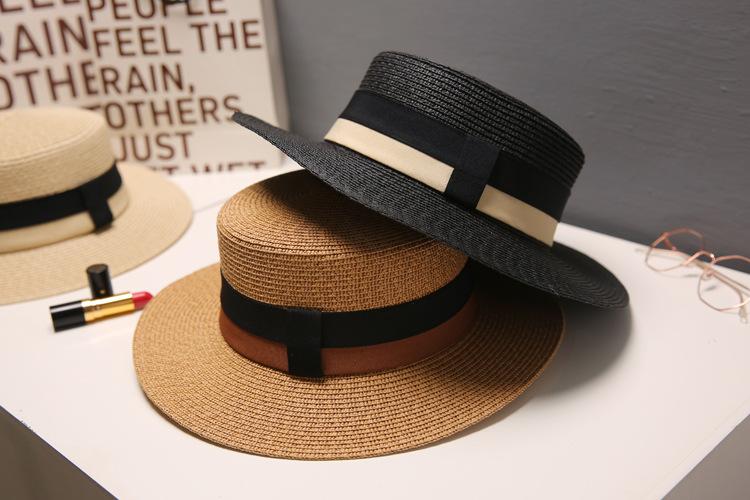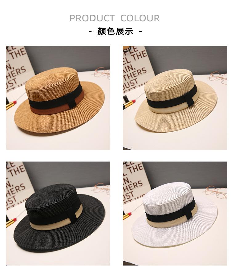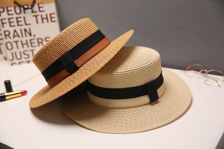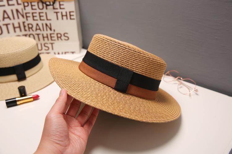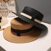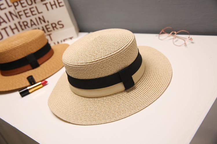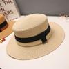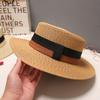Sombrero de Paja Coreano de Copa Plana y Ala Pequeña para Mujer Sombrero de Paja de Verano para Sombra y Protección Solar Moda Popular de Verano Sombrero Británico