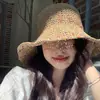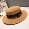 Sombrero de paja de ala pequeña y copa plana coreano para mujer, sombrero de paja de verano para protección solar, sombrero de moda de verano para celebridad de internet, sombrero británico