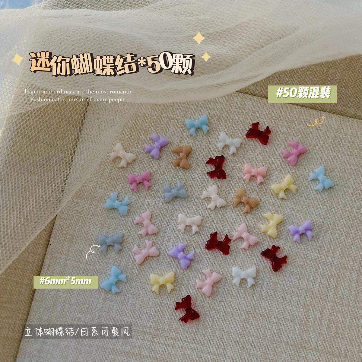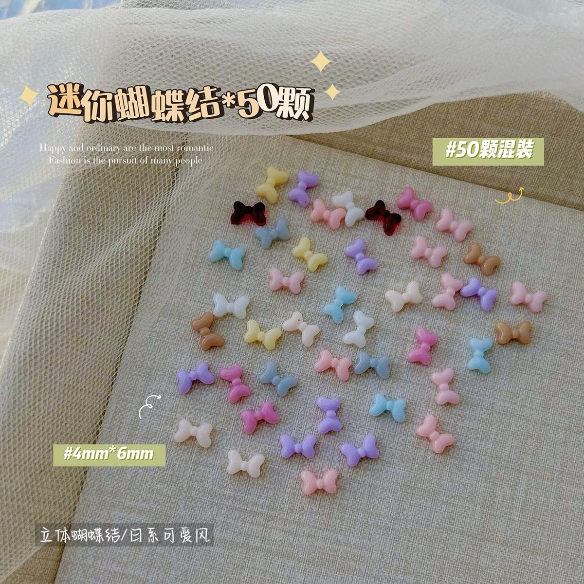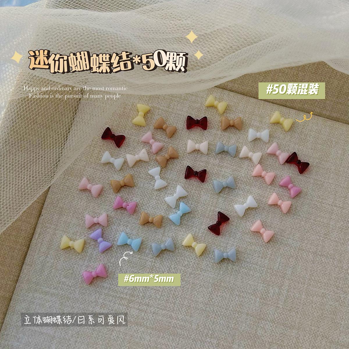 50 piezas Mini Lazo Arte de Uñas Butterscotch Dopamina Resina Cinta Color Mezclado Joyería Arte de Uñas Diamante