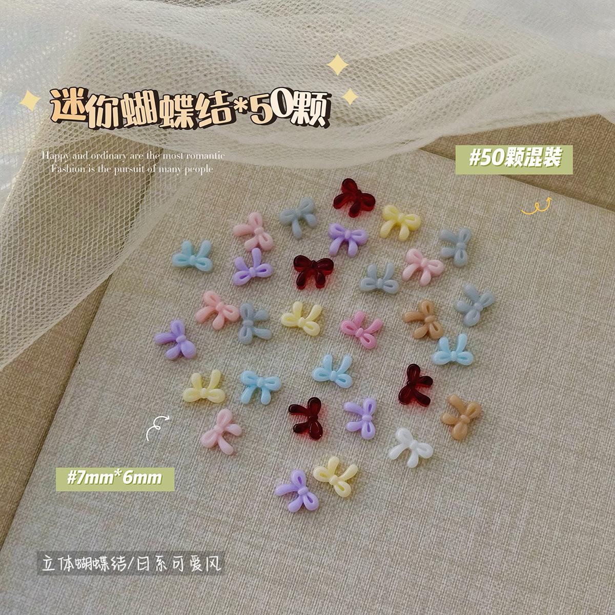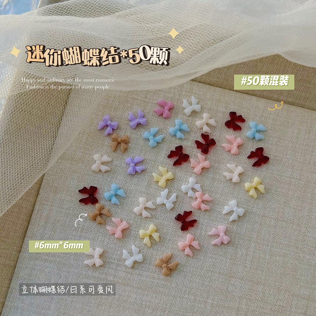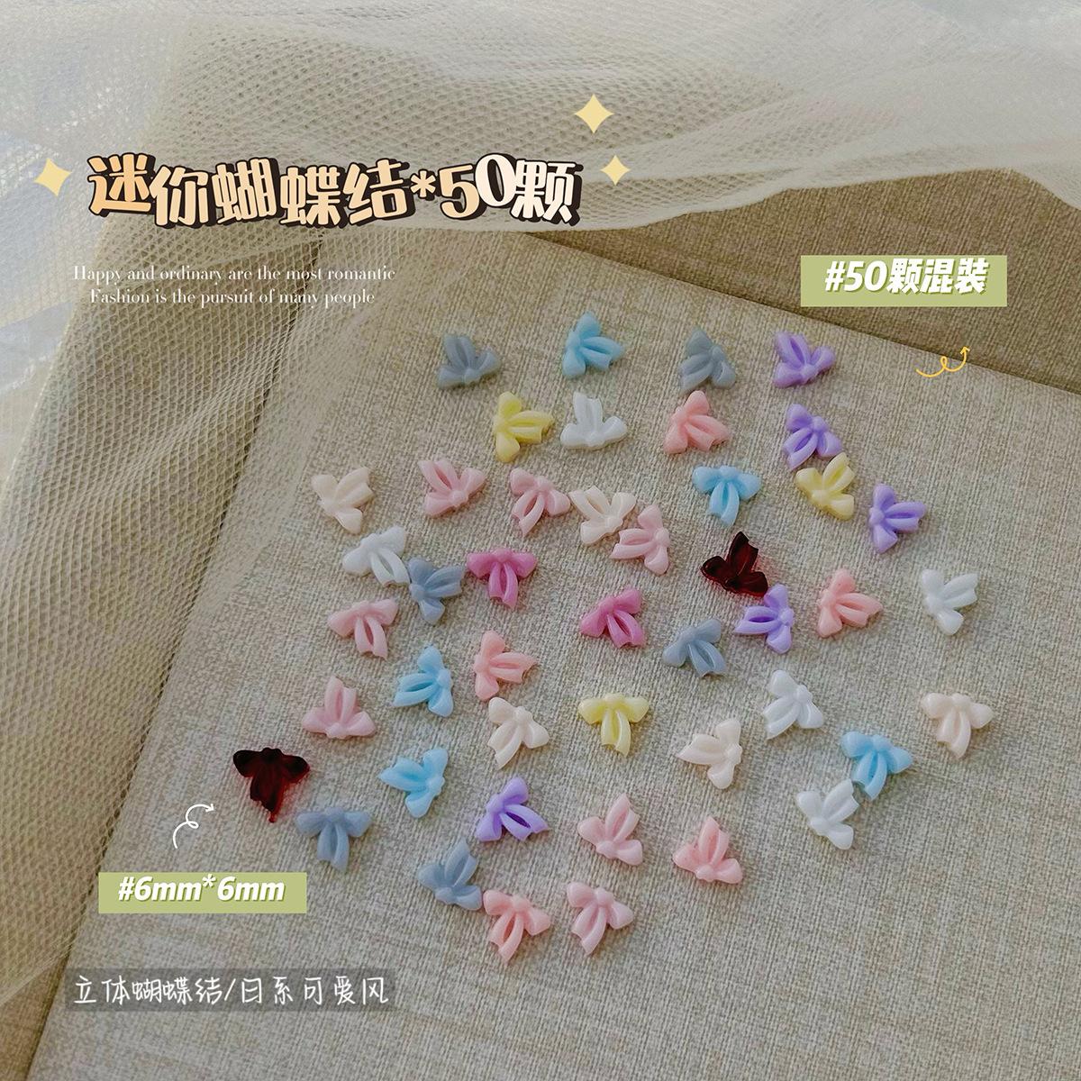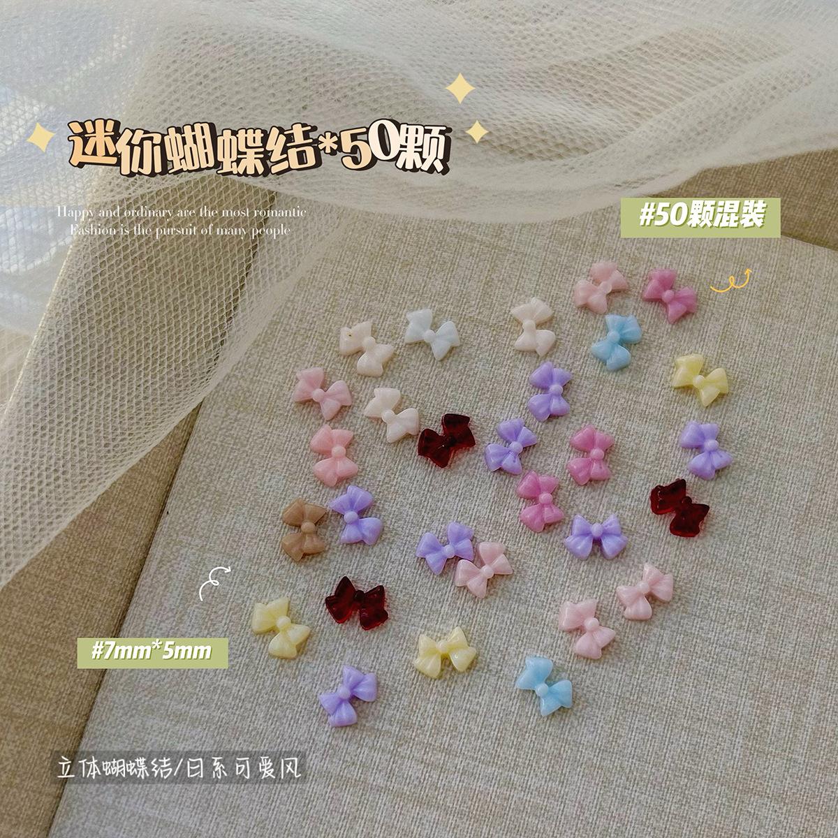50 piezas Mini Lazo Arte de Uñas Butterscotch Dopamina Resina Cinta Color Mezclado Joyería Arte de Uñas Diamante