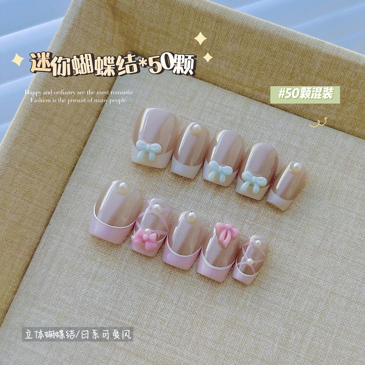 Mini tamaño pequeño Lazo Arte de Uñas Crema Color Caramelo Resina Cinta Color Mezclado Arte de Uñas Joyería Tridimensional Taladro Paquete de 50