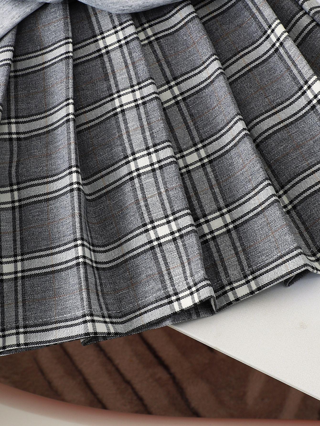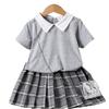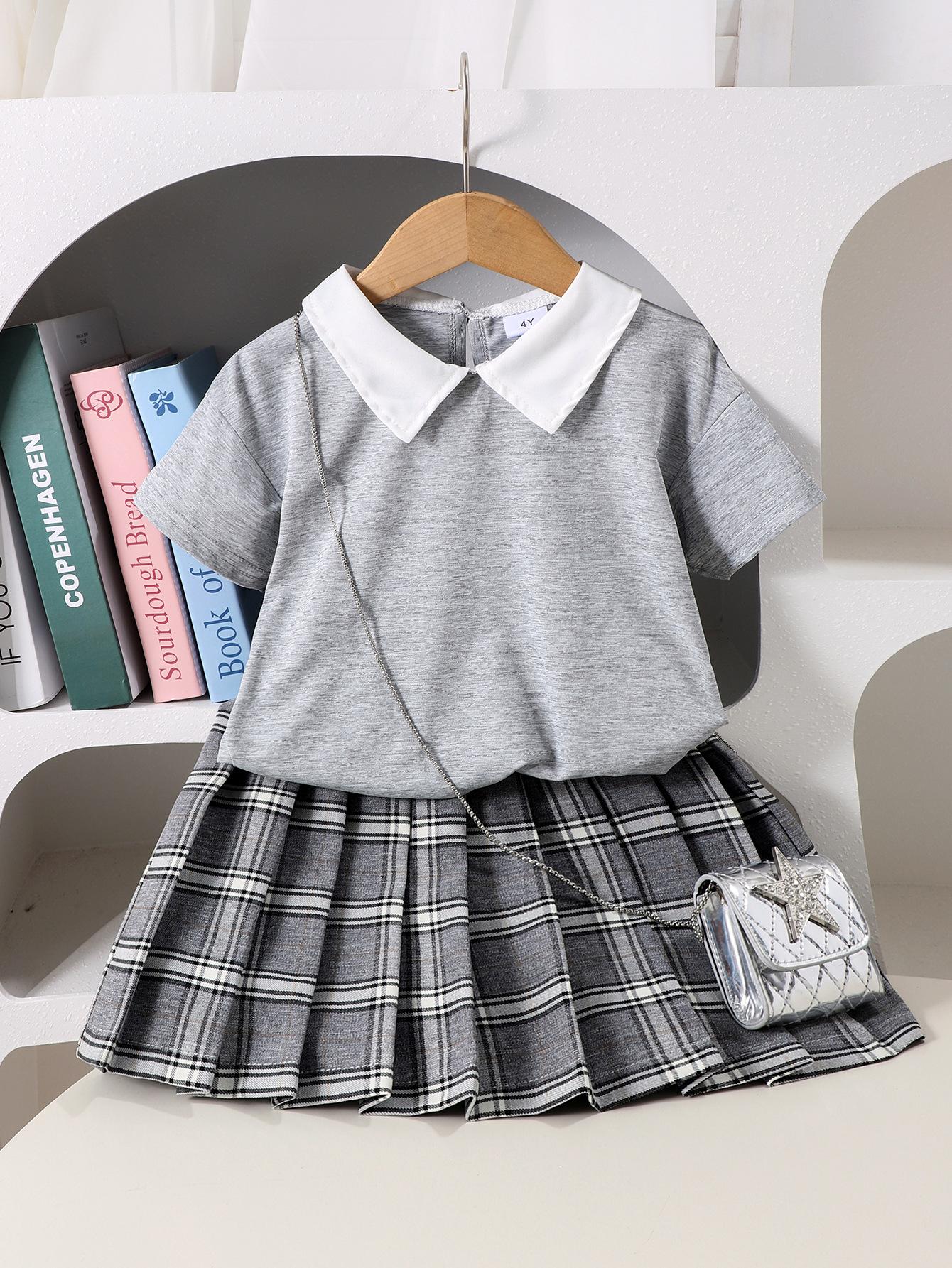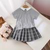 Comercio Exterior Transfronterizo Estilo Universitario Europeo y Americano de Verano Traje de Niña Color Sólido Solapa Manga Corta Falda Plisada Conjunto de Dos Piezas