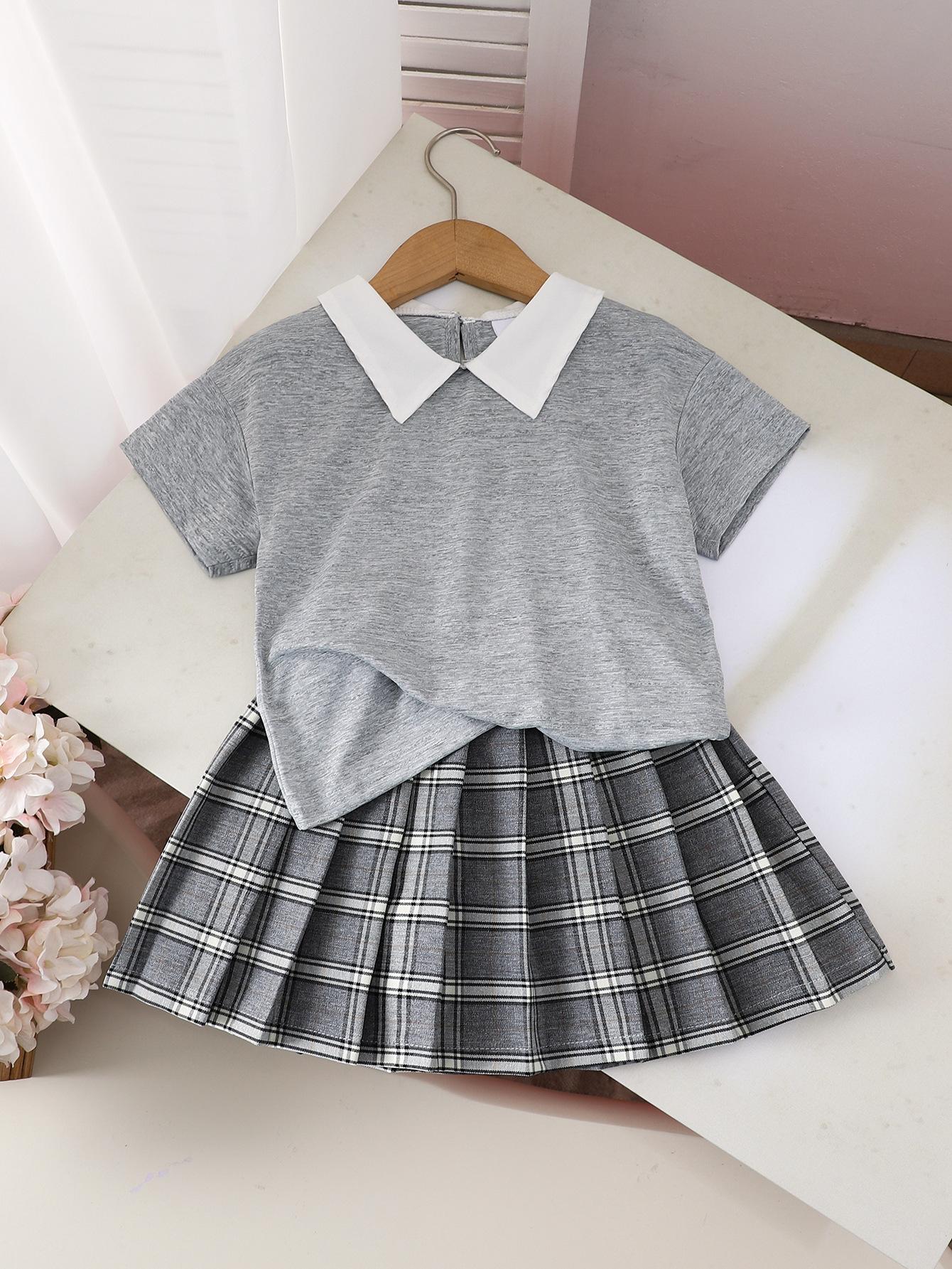 Compra Comercio Exterior Transfronterizo Estilo Universitario Europeo y Americano de Verano Traje de Niña Color Sólido Solapa Manga Corta Falda Plisada Conjunto de Dos Piezas al por mayor en Joom.pro
