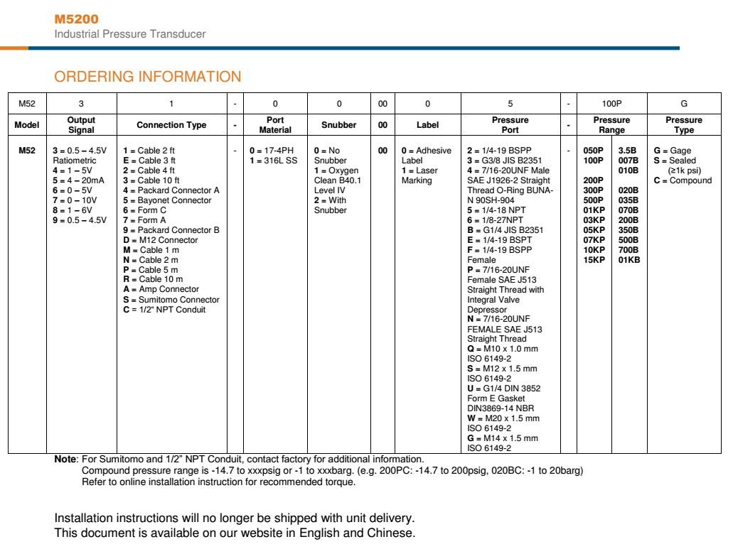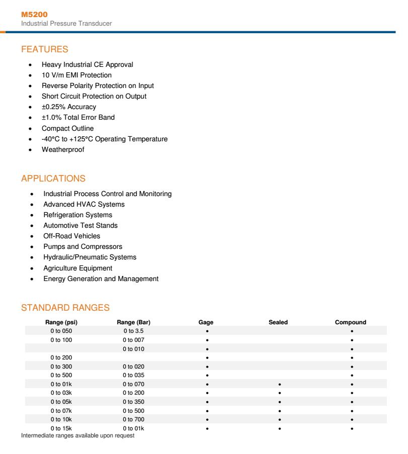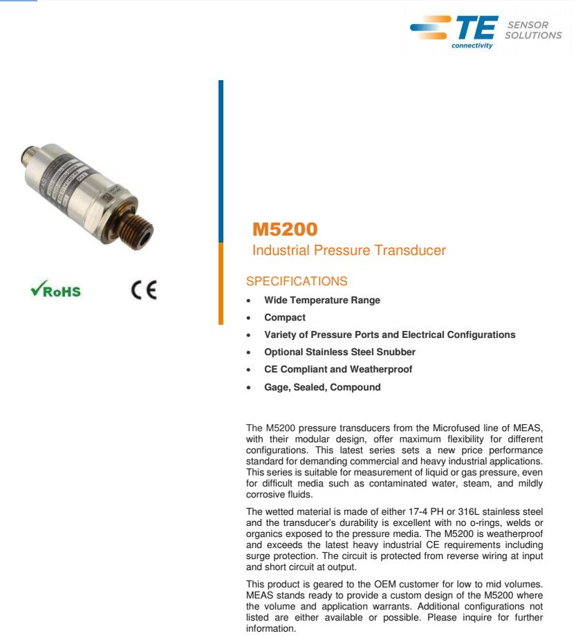 M5256-000002-020BG Sensor de presión Precision/MEAS Soporte técnico original