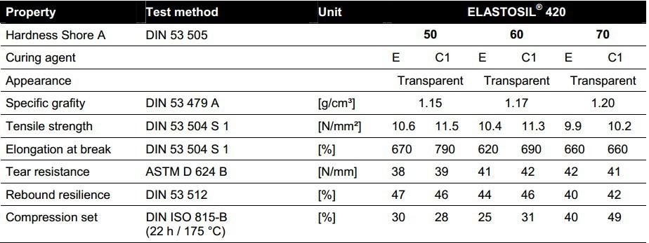 Los productos ELASTOSIL de diferentes grados de dureza de la serie R420/X (x=30,40,50,60,70) se pueden mezclar en cualquier proporción para obtener productos del grado de dureza intermedio deseado.