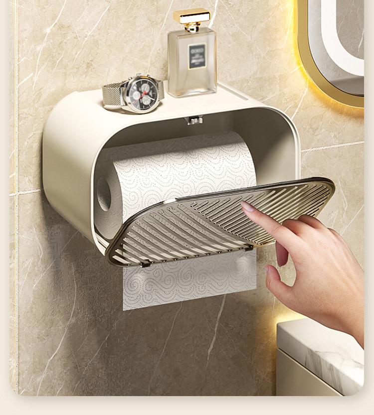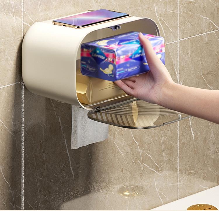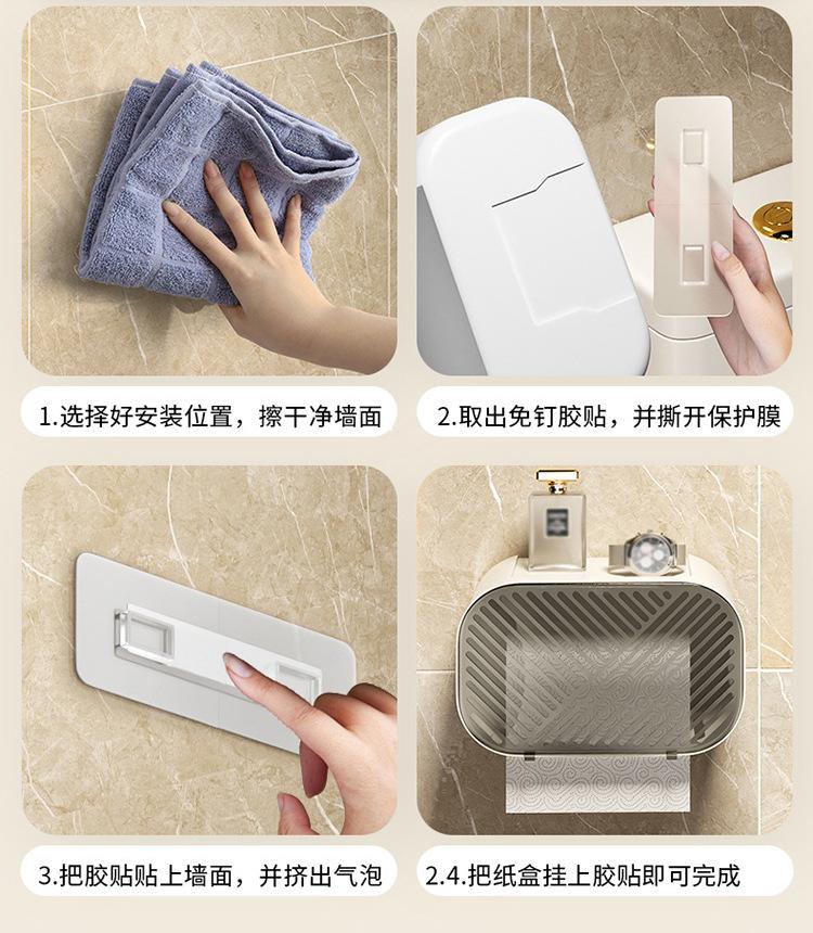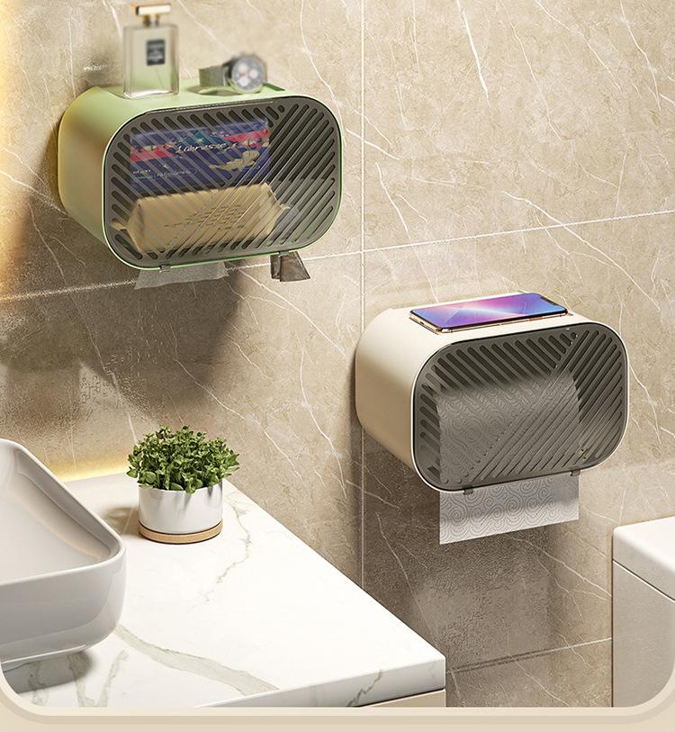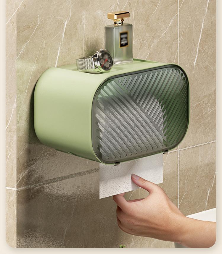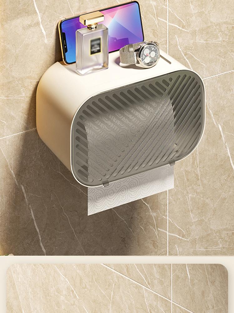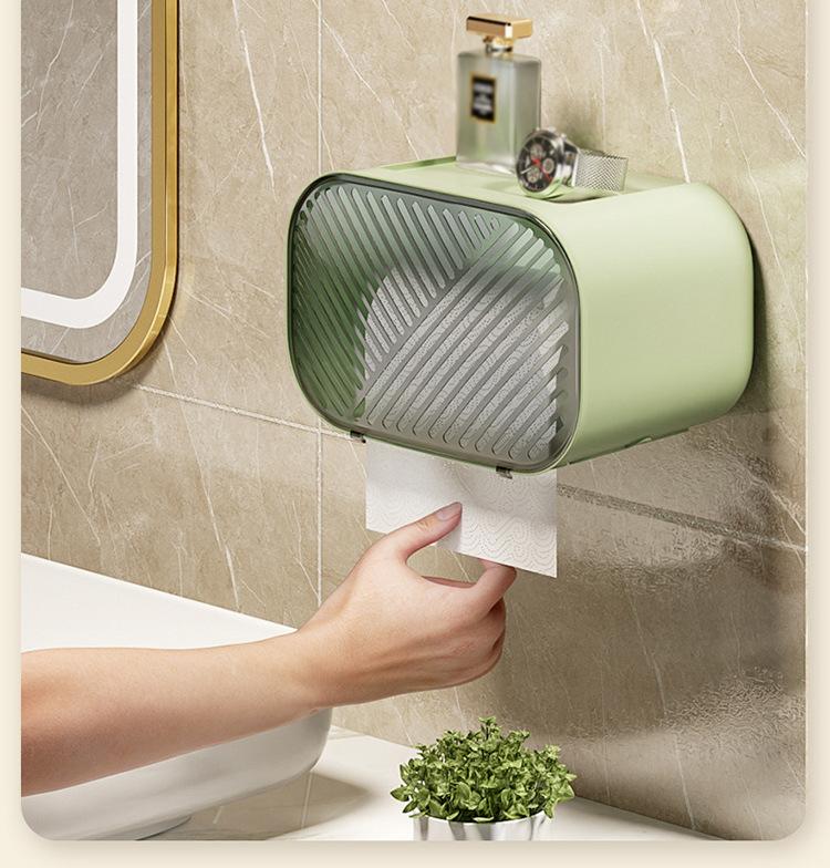 Caja de papel higiénico sin perforaciones, resistente al agua, para rollos de papel higiénico, para baño, estante para colgar en la pared