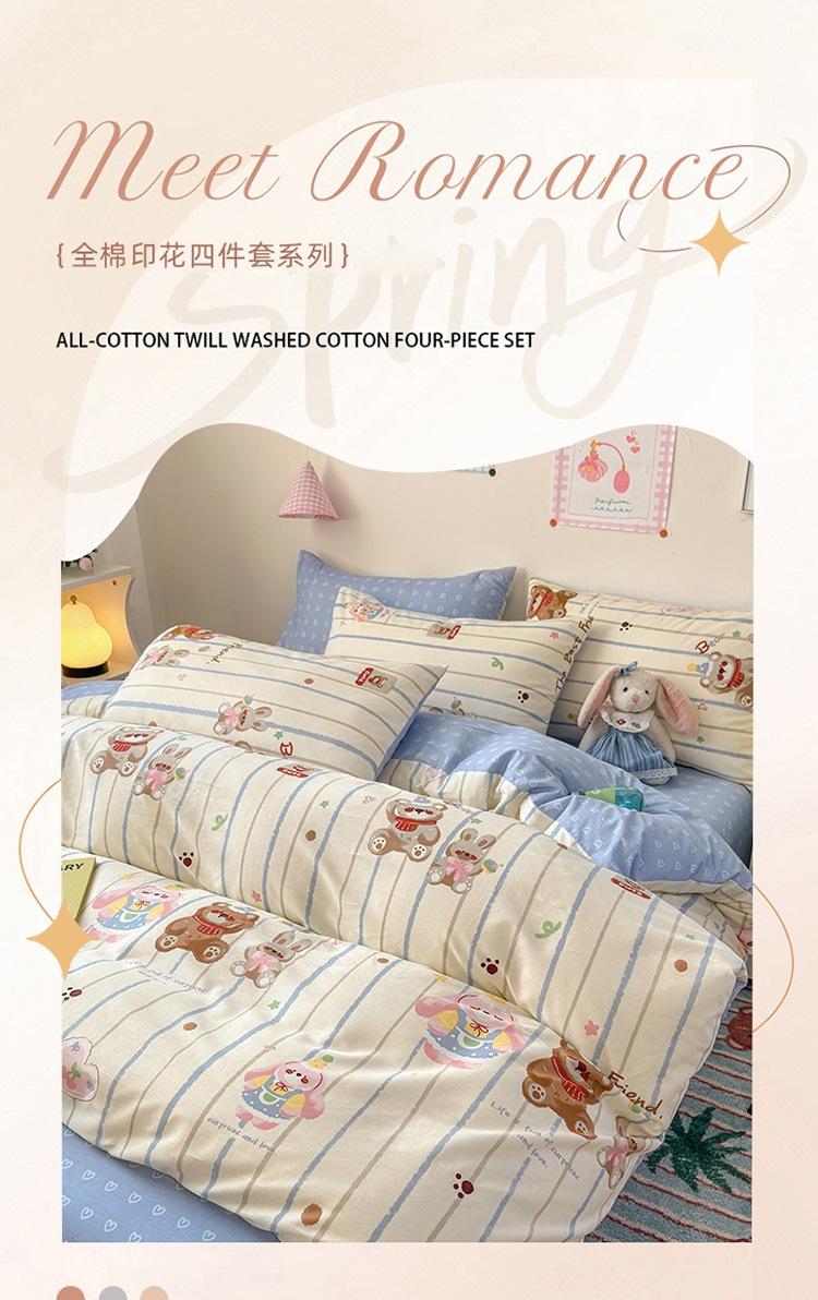 Juego de cuatro piezas de edredón y sábanas de algodón estampado 12868, nuevo, 2025