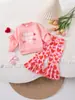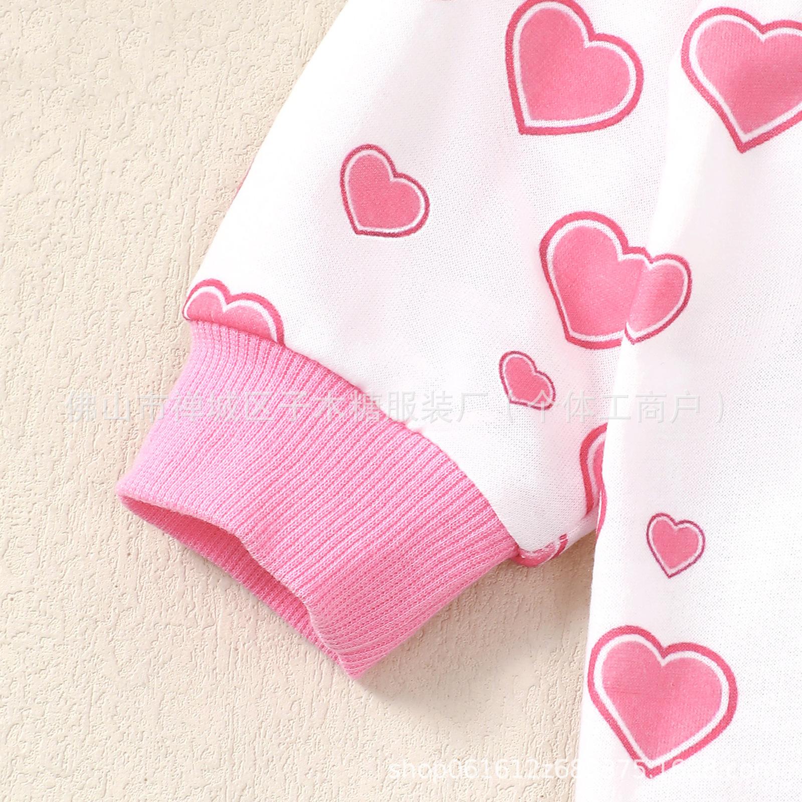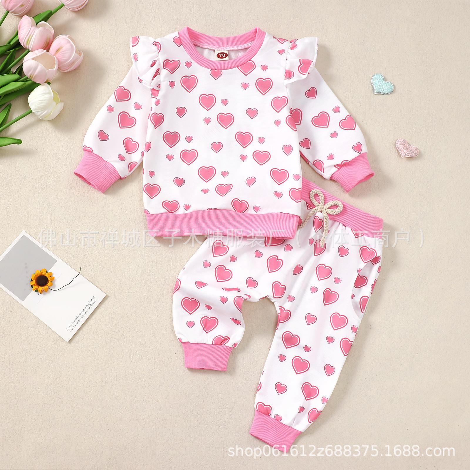 Conjunto de dos piezas de pantalón deportivo con mangas largas, bonito y pequeño, para bebé niña, color rosa, ideal para San Valentín