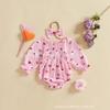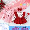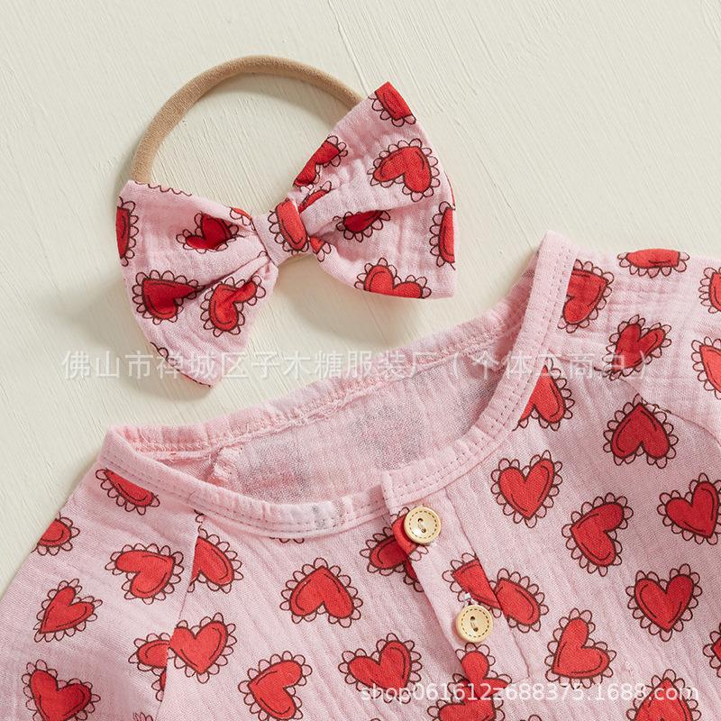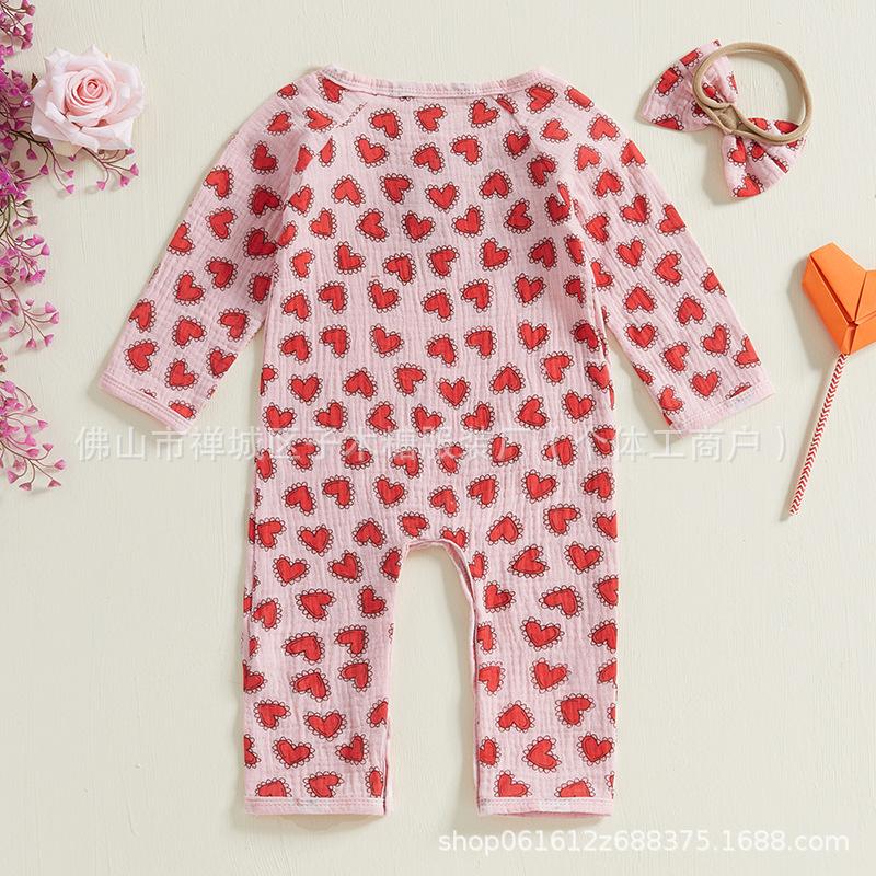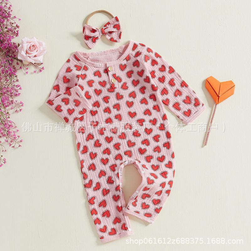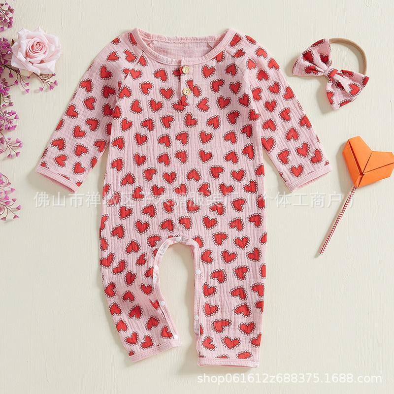 Conjunto de dos piezas para bebé niña, con lazo y anillo para el pelo, para el Día de San Valentín, de manga larga y escalada
